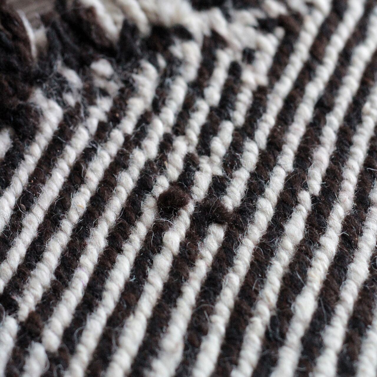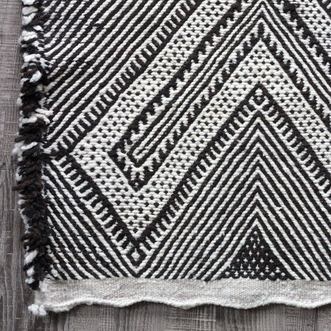 毛足のない平織りキリムは、定番白黒のモノトーン。