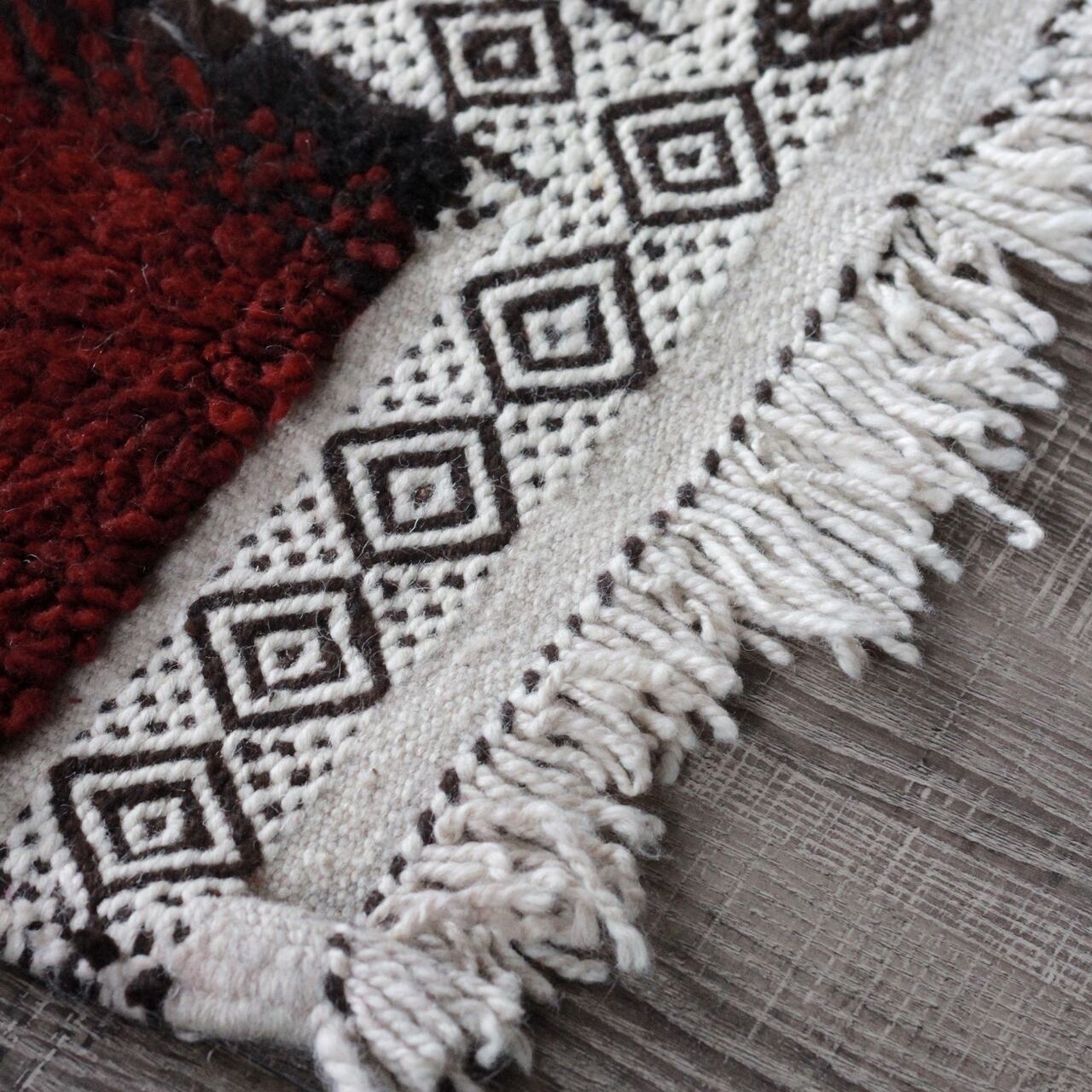 当店では、モロッコのアトラス山脈で暮らしているベルベル民族の女性たちによって、手紡ぎ・染色・手織りされているザナフィラグを直輸入しております。
