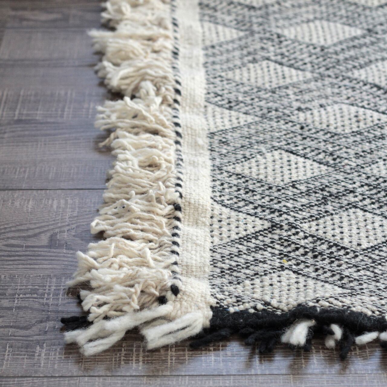 毛足のない平織りキリムは、黒とアイボリー色。