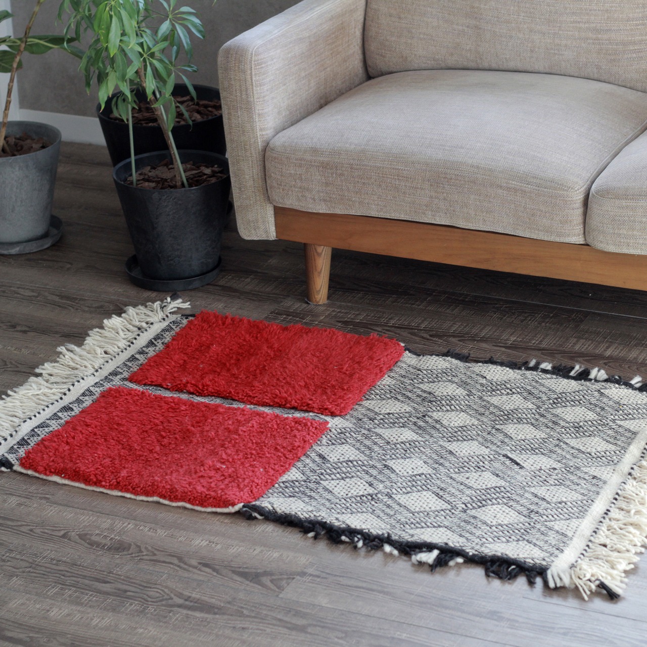ミックスザナフィラグのスモールサイズの中でも比較的大きめサイズなので、脚が華奢なローテーブルの下に敷いても、模様を隠さずザナフィの情緒をお楽しみいただけます。