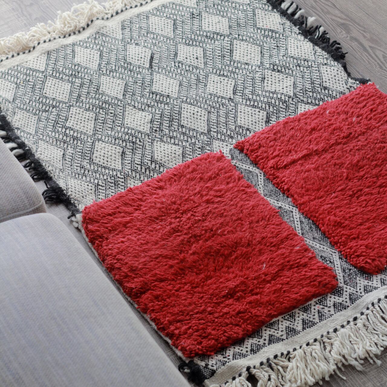 布団たたきなどでパンパンと叩くと寝ていた毛足が立ち上がり、より気持ちのいいラグになります。