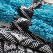 みっちりと織り込み黒面積を増やすことで、青色に負けないくらい目を惹く幾何学模様。