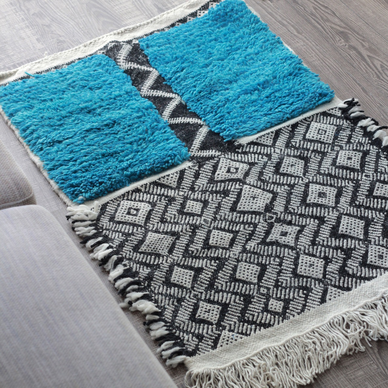 ≪世界の文化の交差点≫と呼ばれているモロッコだからこそ生まれた、ベルベル文化特有の象徴的な幾何学紋様が描かれた特徴的な絨毯です。