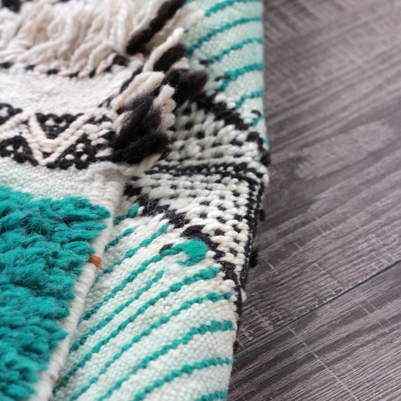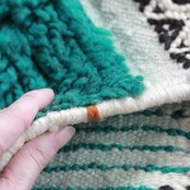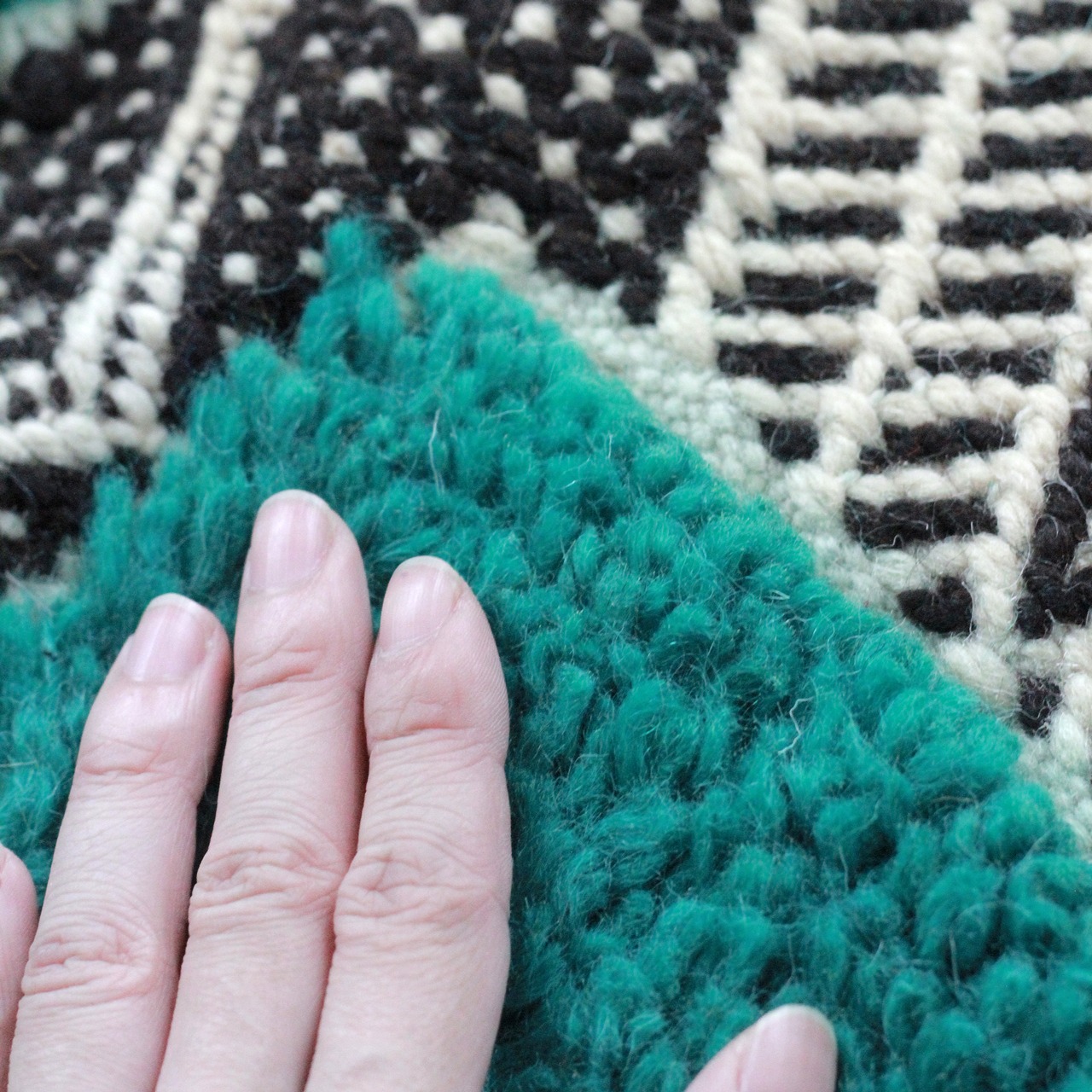 毛足のあるパイル織りはとなかなか出会うことのない、エメラルドグリーンのような鮮やかな青緑色。