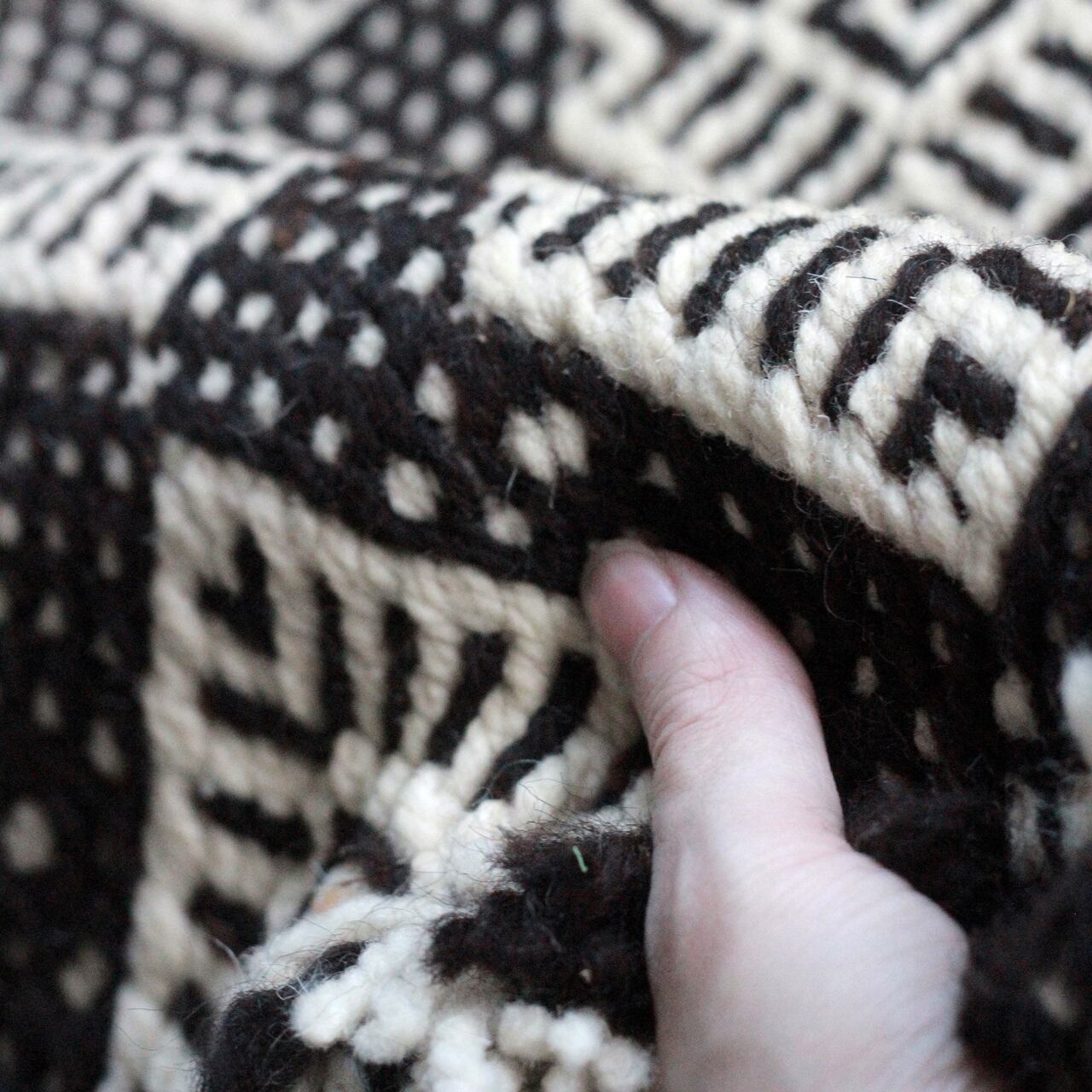 羊毛から染色原料に至るまで、全て自然素材、手作業での逸品となりますので、多少の歪みや色ムラ、糸の混在が見受けられる場合がございますが、手仕事ならではのラフな風合いや温もりを感じていただけますと幸いです。