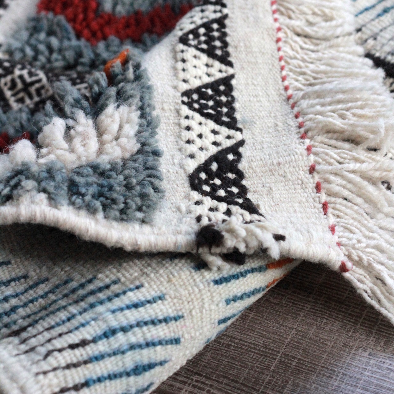 当店では、モロッコのアトラス山脈で暮らしているベルベル民族の女性たちによって、手紡ぎ・染色・手織りされているザナフィラグを直輸入しております。