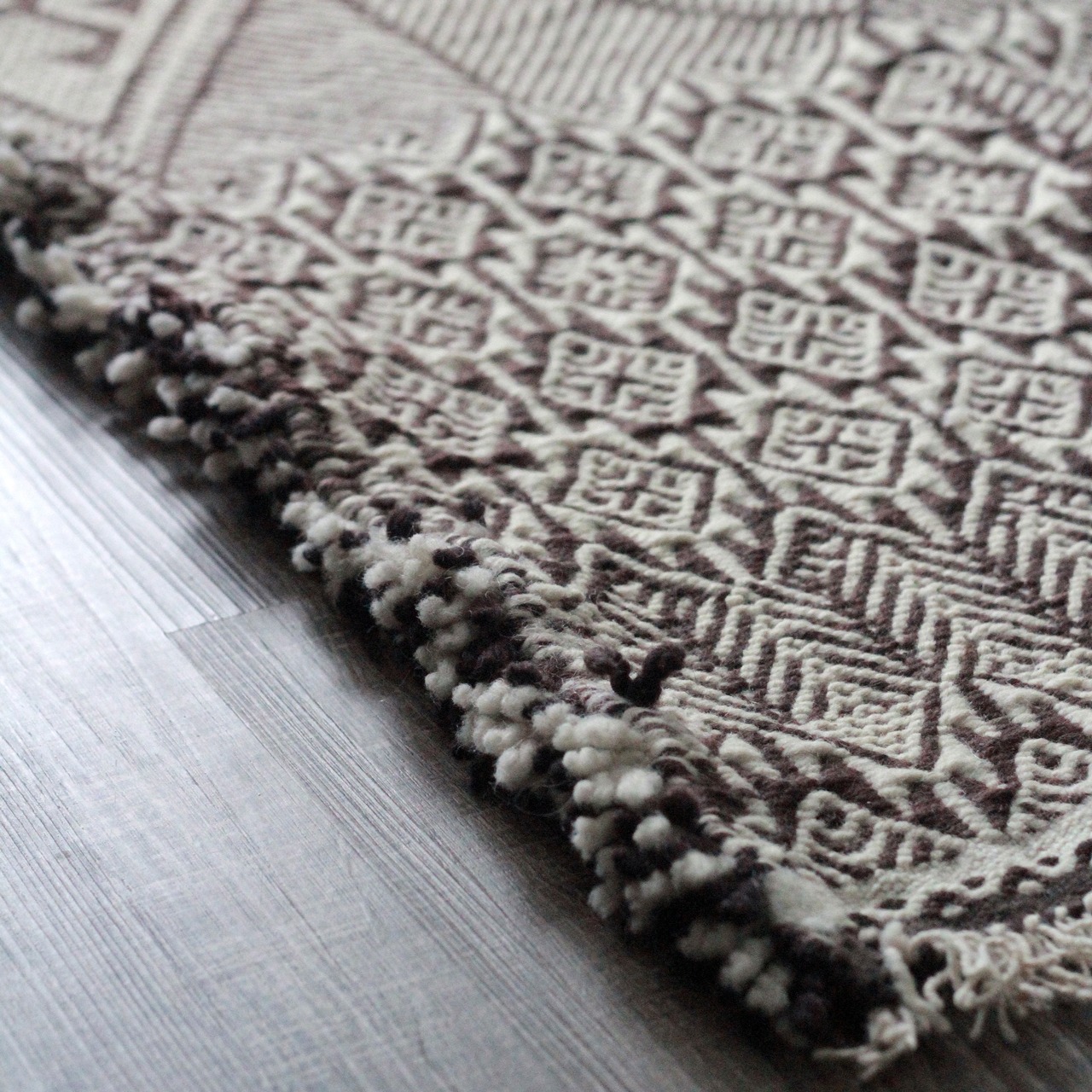 ≪世界の文化の交差点≫と呼ばれているモロッコだからこそ生まれた、ベルベル文化特有の象徴的な幾何学紋様が描かれた特徴的な絨毯です。