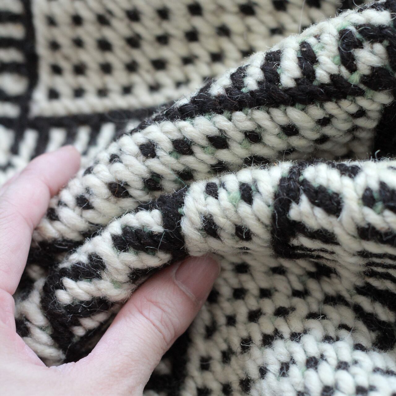 羊毛から染色原料に至るまで、全て自然素材、手作業での逸品となりますので、多少の歪みや色ムラ、糸の混在が見受けられる場合がございますが、手仕事ならではのラフな風合いや温もりを感じていただけますと幸いです。