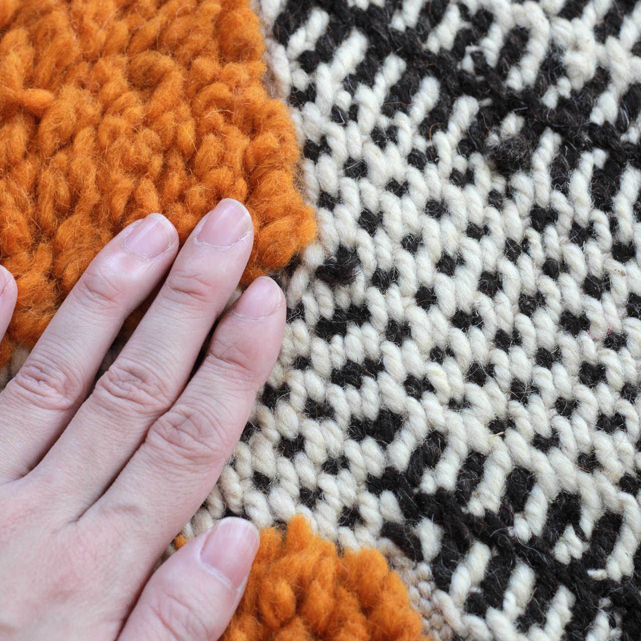 ≪世界の文化の交差点≫と呼ばれているモロッコだからこそ生まれた、ベルベル文化特有の象徴的な幾何学紋様が描かれた特徴的な絨毯です。