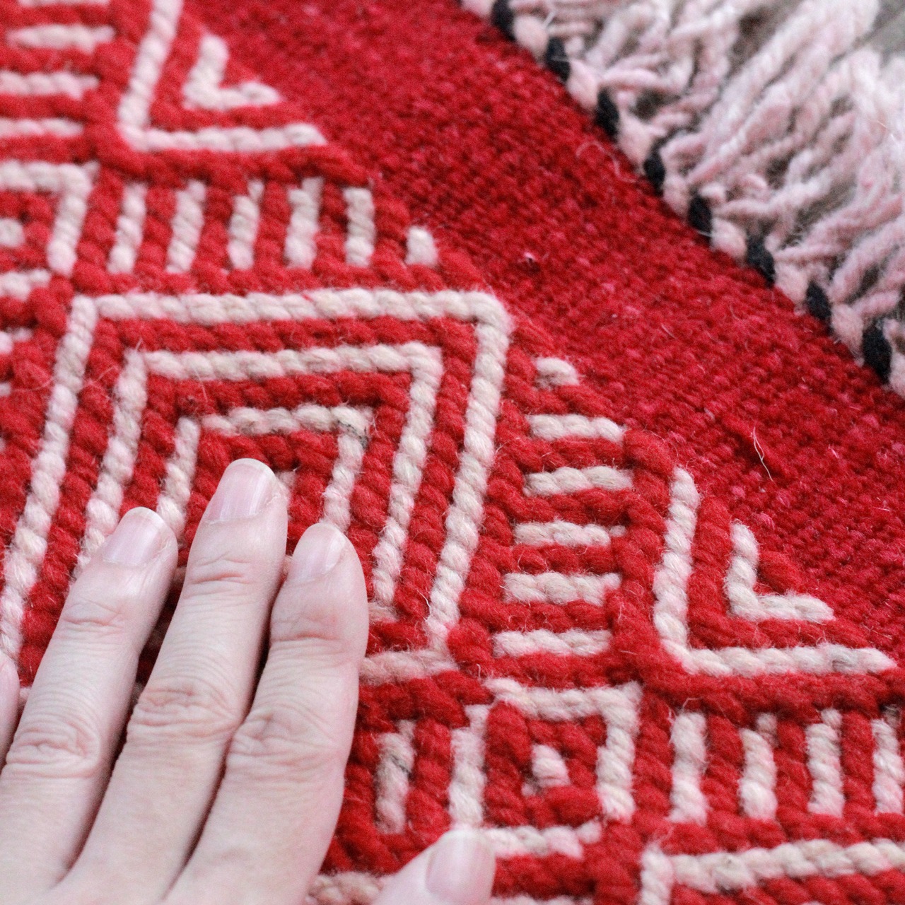 ≪世界の文化の交差点≫と呼ばれているモロッコだからこそ生まれた、ベルベル文化特有の象徴的な幾何学紋様が描かれた特徴的な絨毯です。