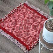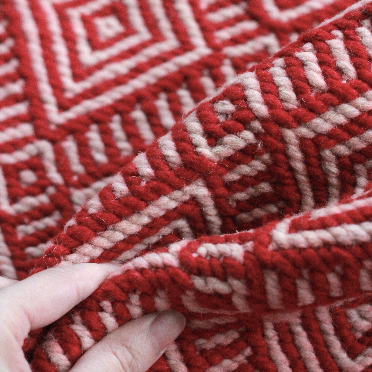 羊毛から染色原料に至るまで、全て自然素材、手作業での逸品となりますので、多少の歪みや色ムラ、糸の混在が見受けられる場合がございますが、手仕事ならではのラフな風合いや温もりを感じていただけますと幸いです。