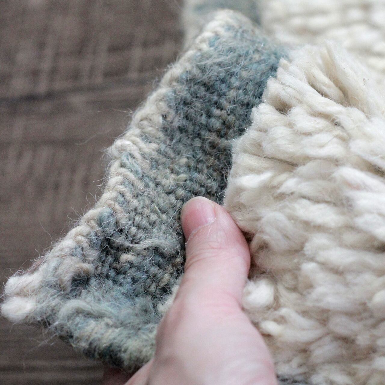 羊毛から染色原料に至るまで、全て自然素材、手作業での逸品となりますので、多少の歪みや色ムラ、糸の混在が見受けられる場合がございますが、手仕事ならではのラフな風合いや温もりを感じていただけますと幸いです。