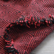深紅と漆黒が織りなすこの一枚は、燃えさしの炭のように、静かに、しかし確かに熱を宿しています。