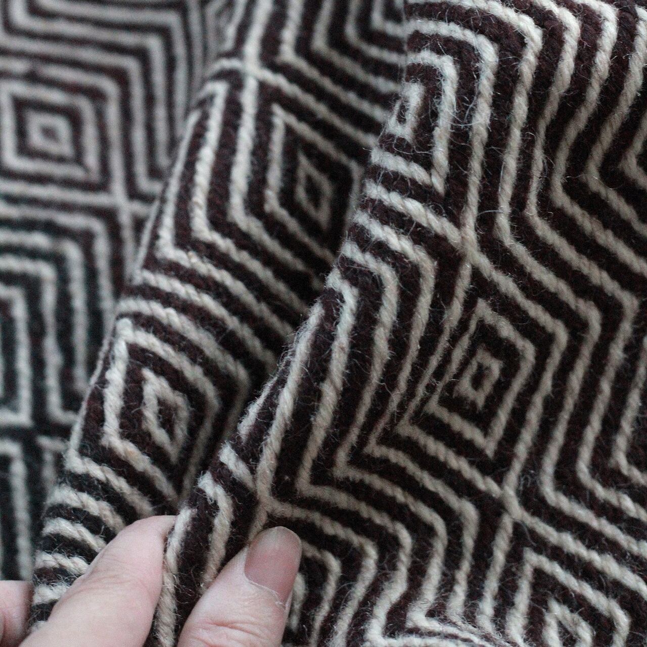 羊毛から染色原料に至るまで、全て自然素材、手作業での逸品となりますので、多少の歪みや色ムラ、糸の混在が見受けられる場合がございますが、手仕事ならではのラフな風合いや温もりを感じていただけますと幸いです。