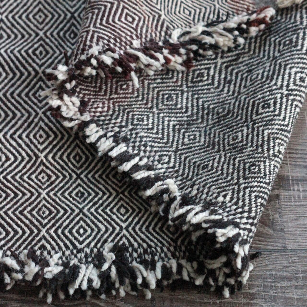 当店では、モロッコのアトラス山脈で暮らしているベルベル民族の女性たちによって、手紡ぎ・染色・手織りされているザナフィラグを直輸入しております。