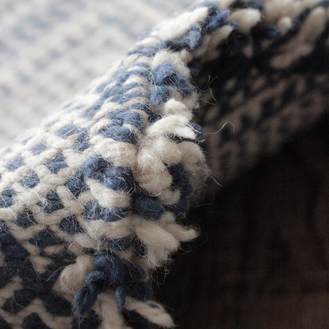 羊毛から染色原料に至るまで、全て自然素材、手作業での逸品となりますので、多少の歪みや色ムラ、糸の混在が見受けられる場合がございますが、手仕事ならではのラフな風合いや温もりを感じていただけますと幸いです。
