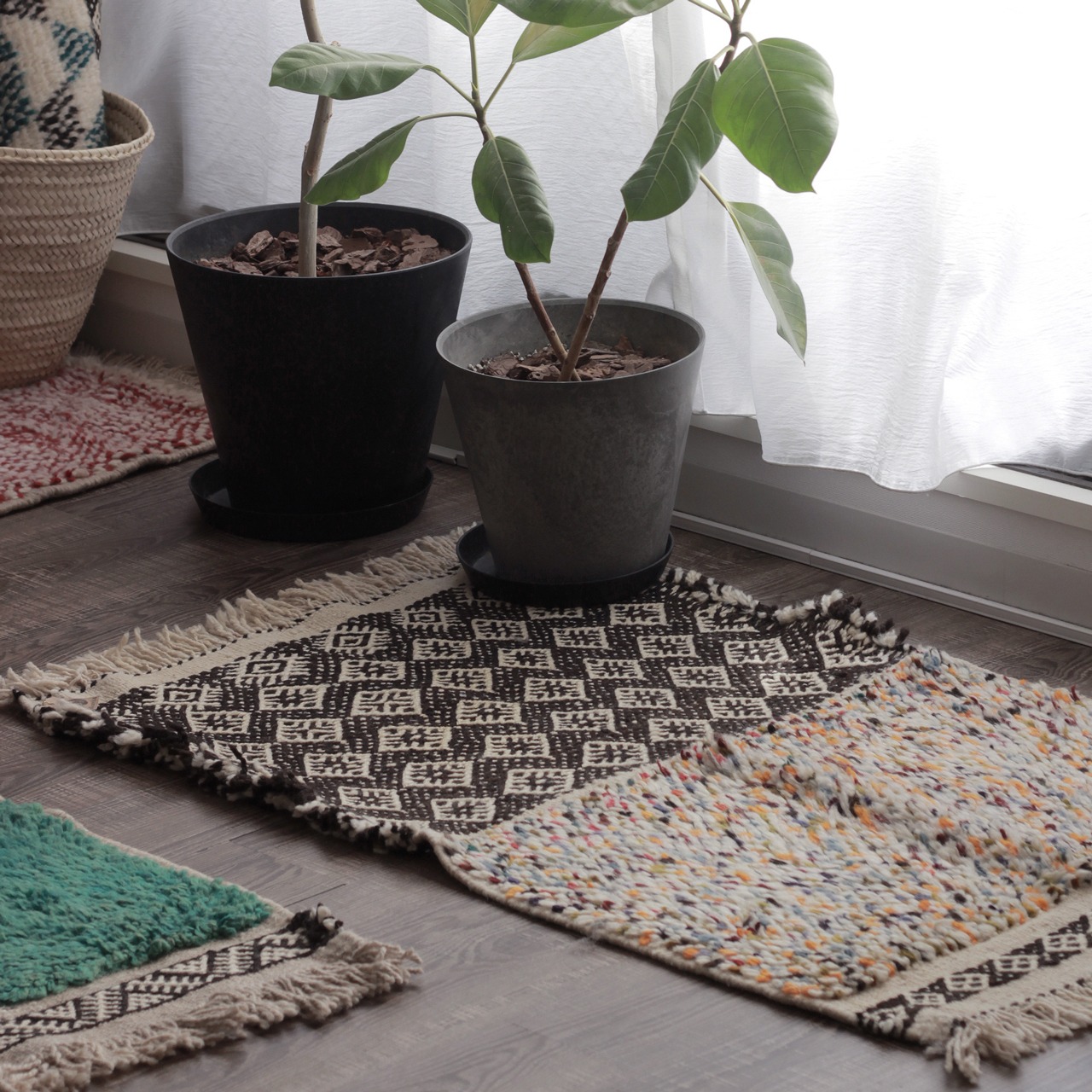・当店のラグはすべて手仕事での制作のため、記載のサイズには多少の誤差がございます。おおよその目安にしていただければと思います。