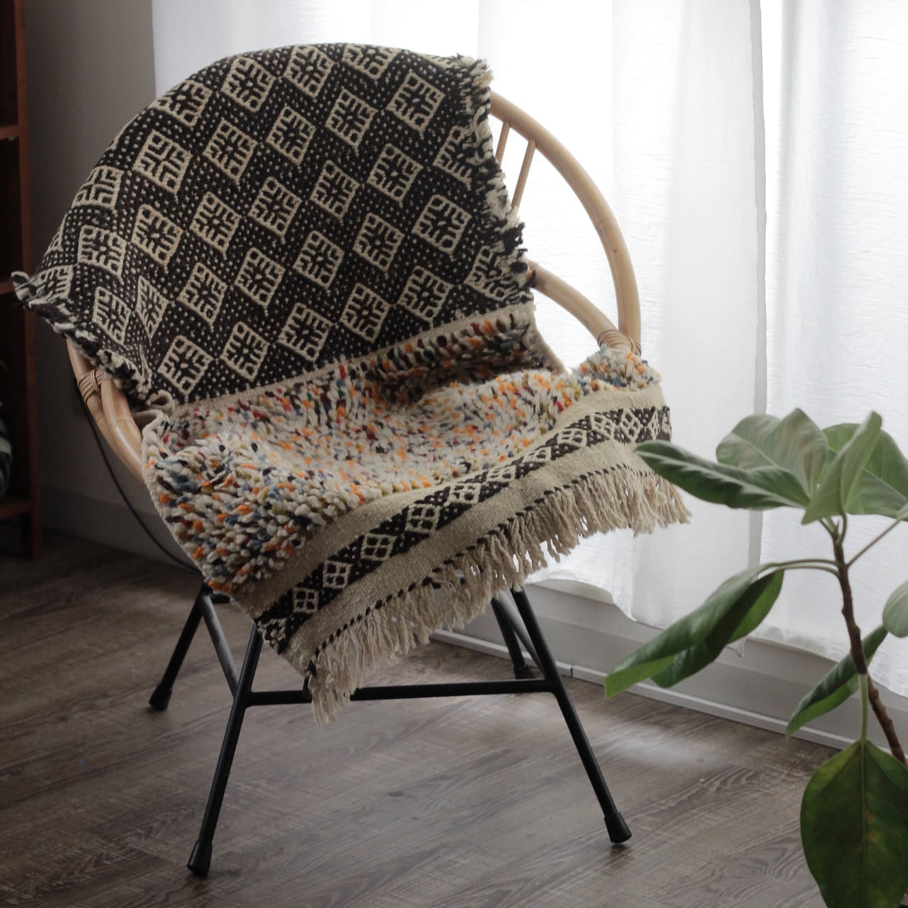 当店では、モロッコのアトラス山脈で暮らしているベルベル民族の女性たちによって、手紡ぎ・染色・手織りされているザナフィラグを直輸入しております。