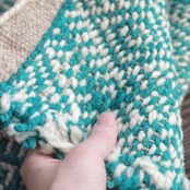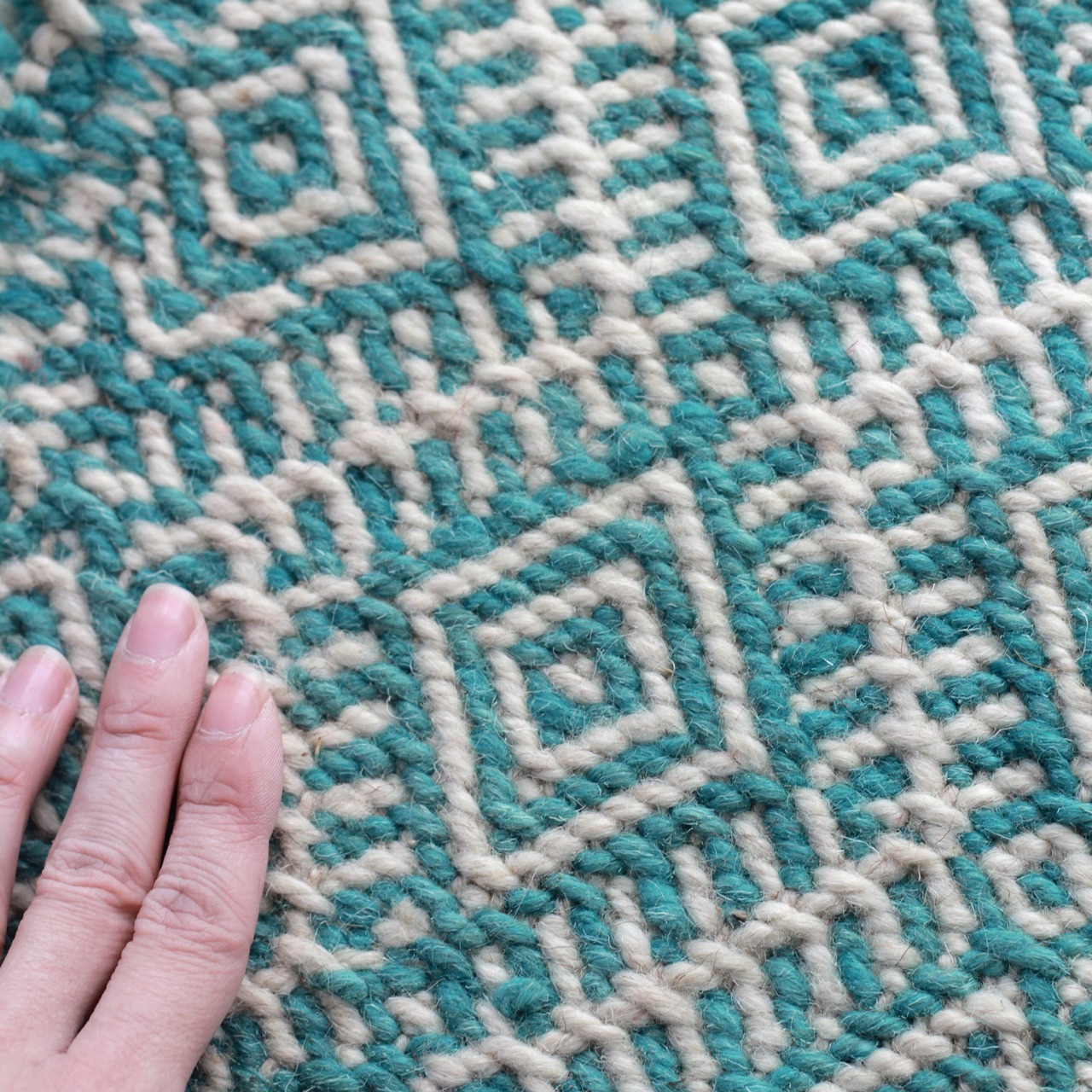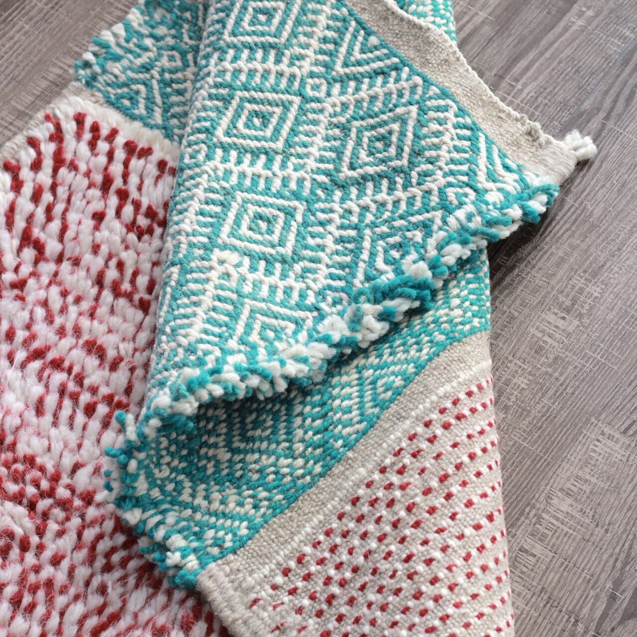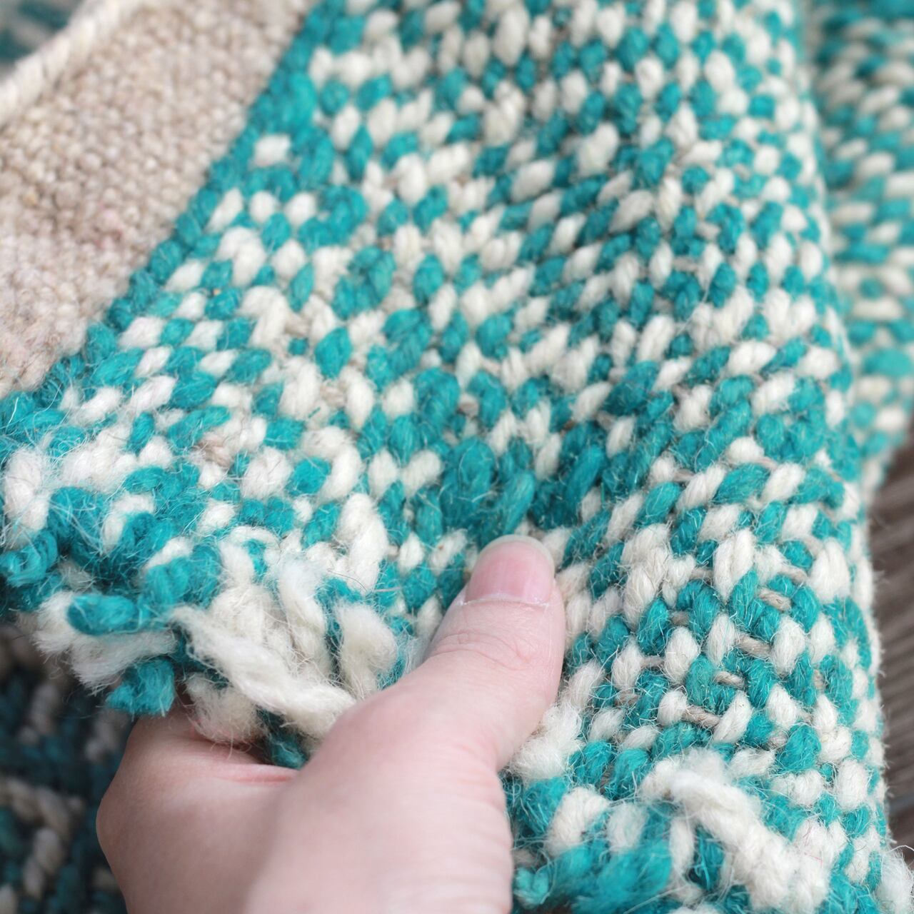 羊毛から染色原料に至るまで、全て自然素材、手作業での逸品となりますので、多少の歪みや色ムラ、糸の混在が見受けられる場合がございますが、手仕事ならではのラフな風合いや温もりを感じていただけますと幸いです。