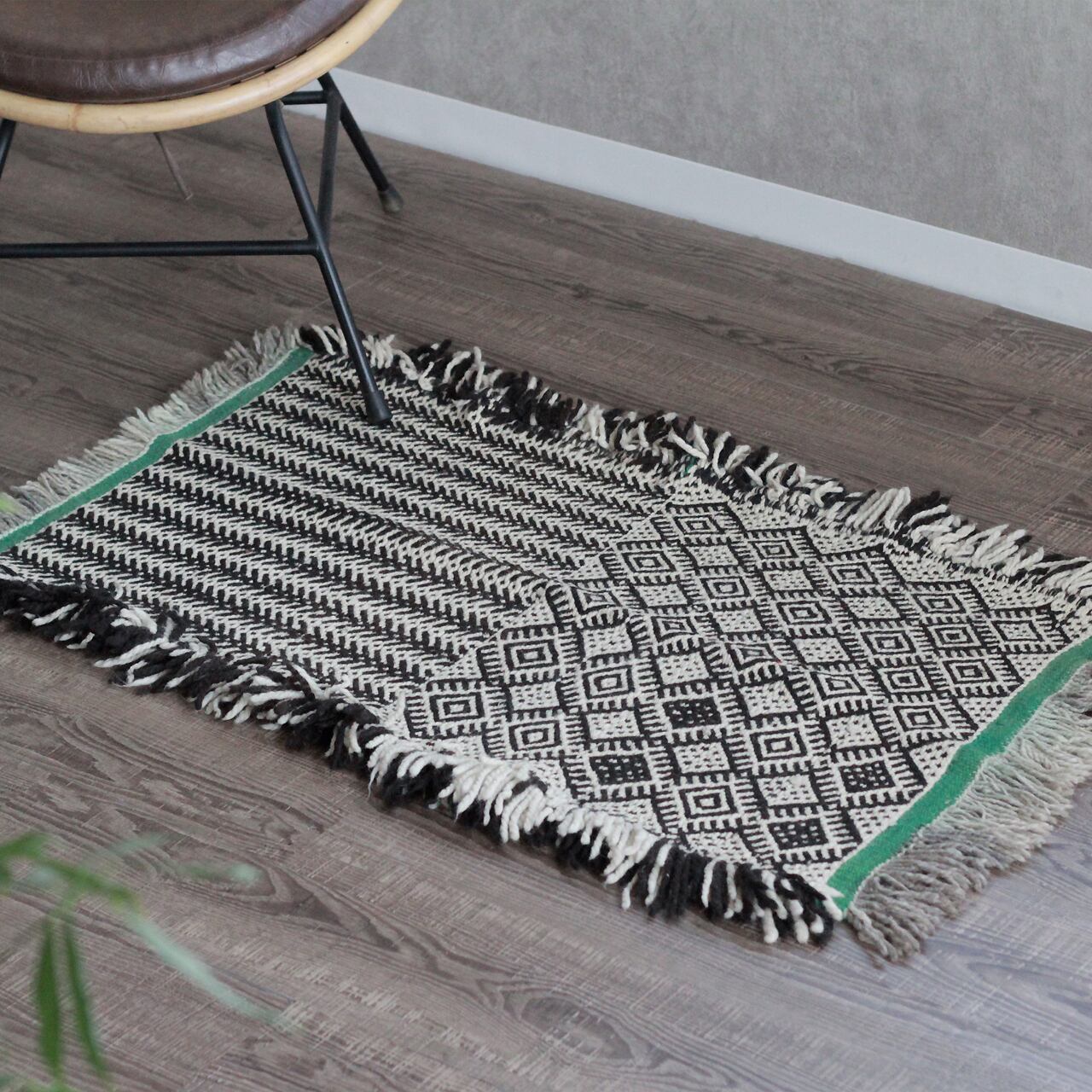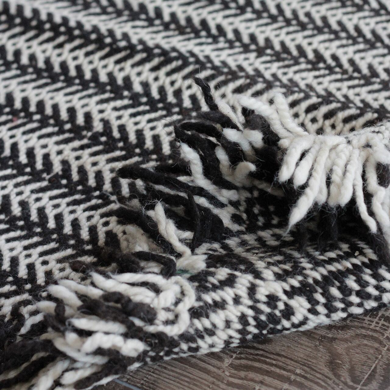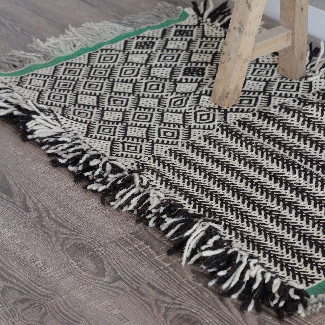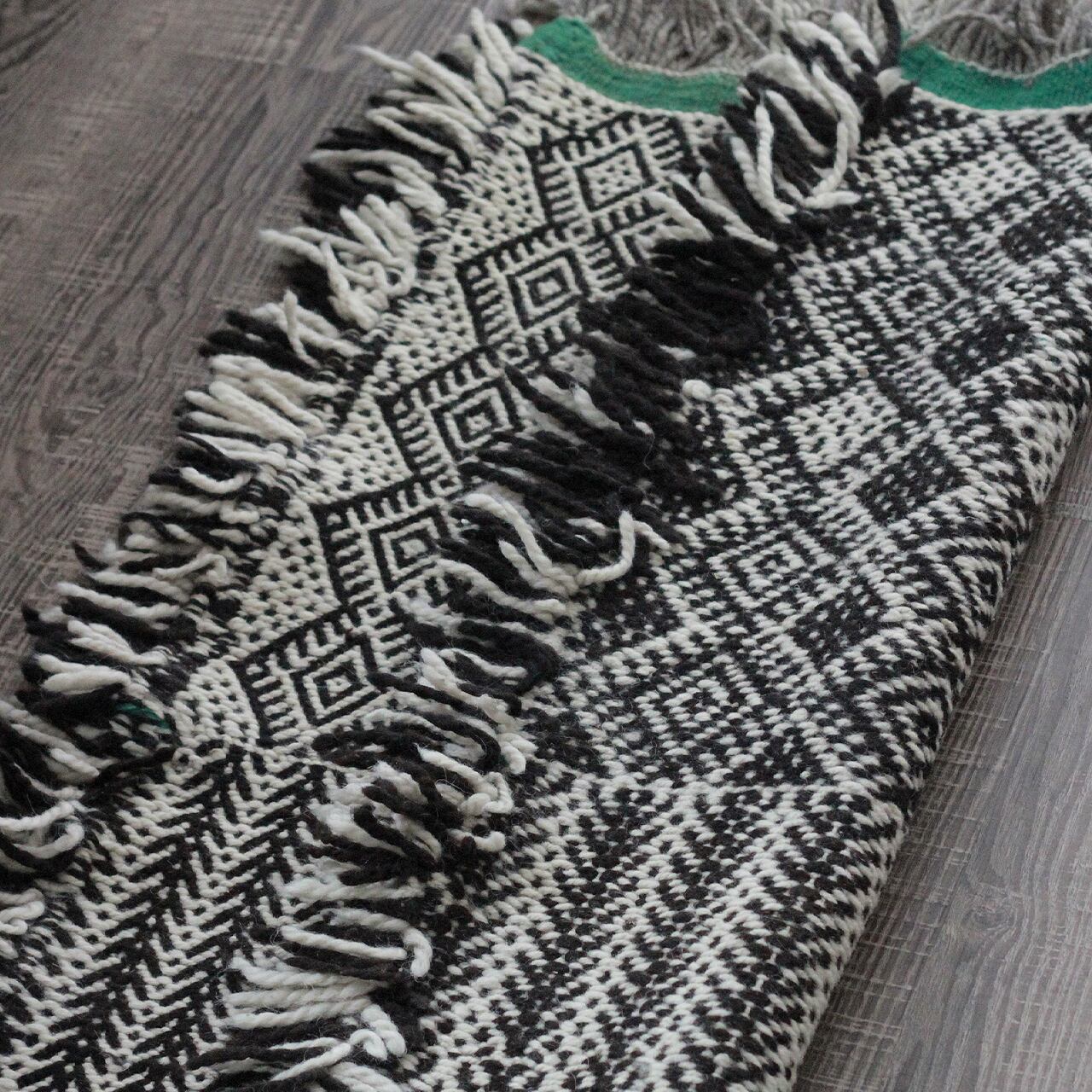 先人たちの失われた伝統を受け継いで、羊毛を手紡ぎ人の手で丁寧に織られたこだわりのスモールラグです。