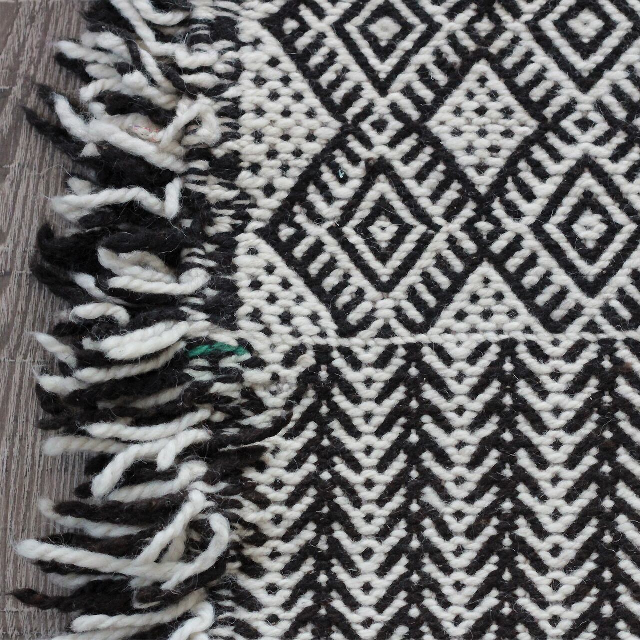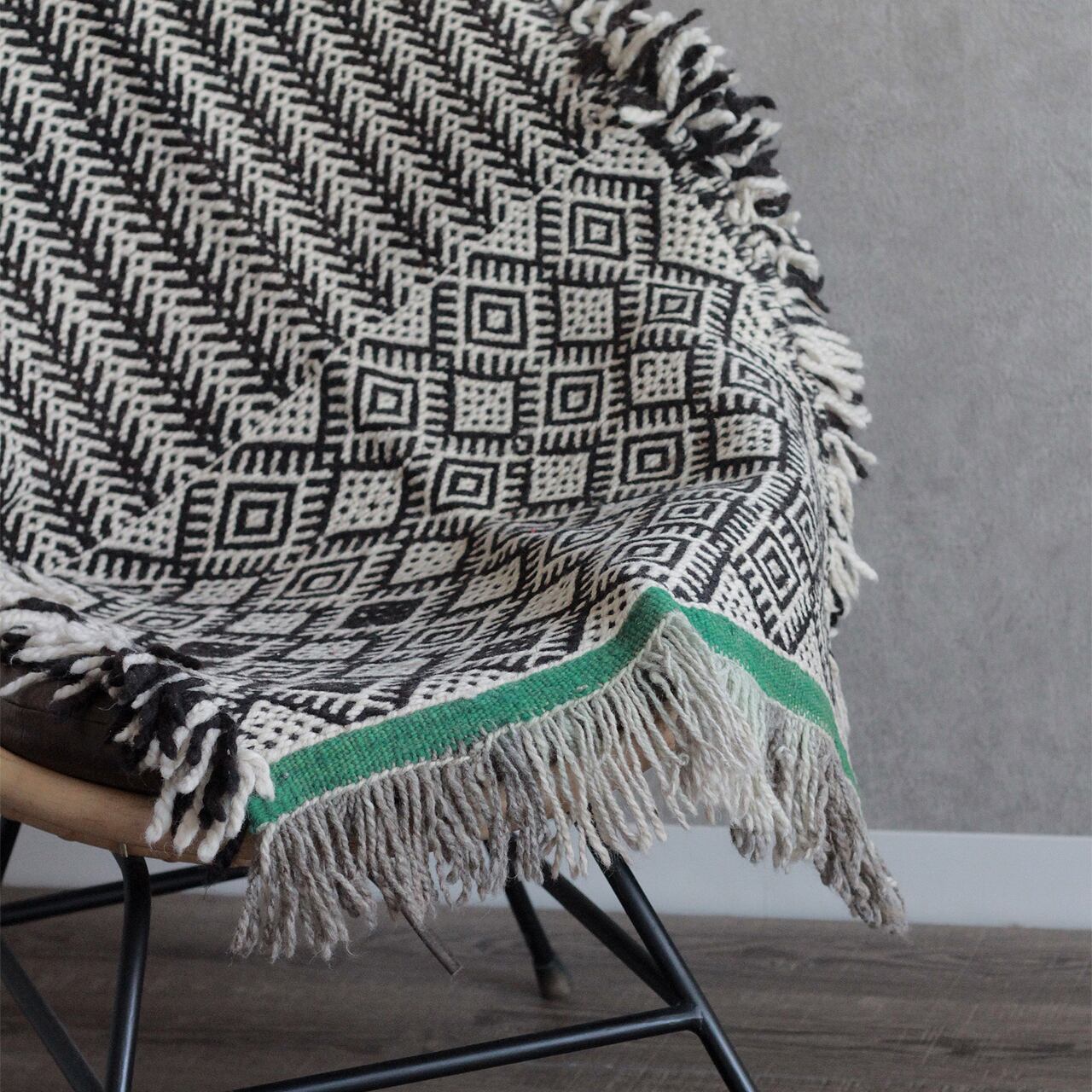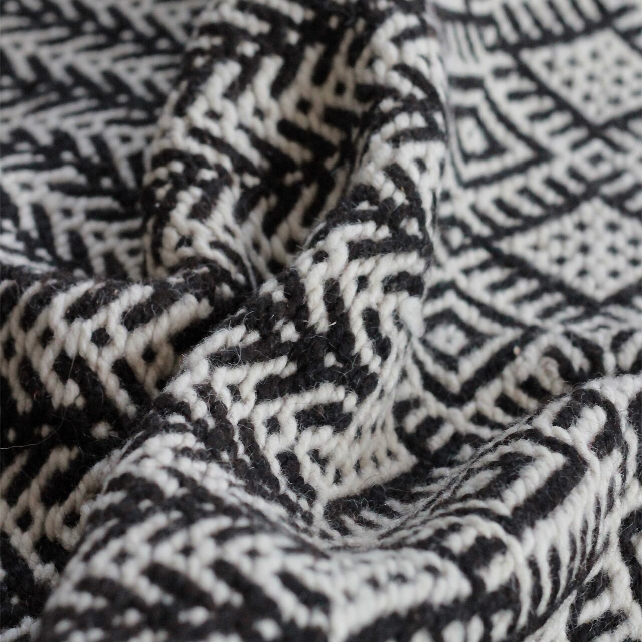 異なる複雑な幾何学模様を繋ぐ織りも丁寧な手仕事で仕上げた1枚です。