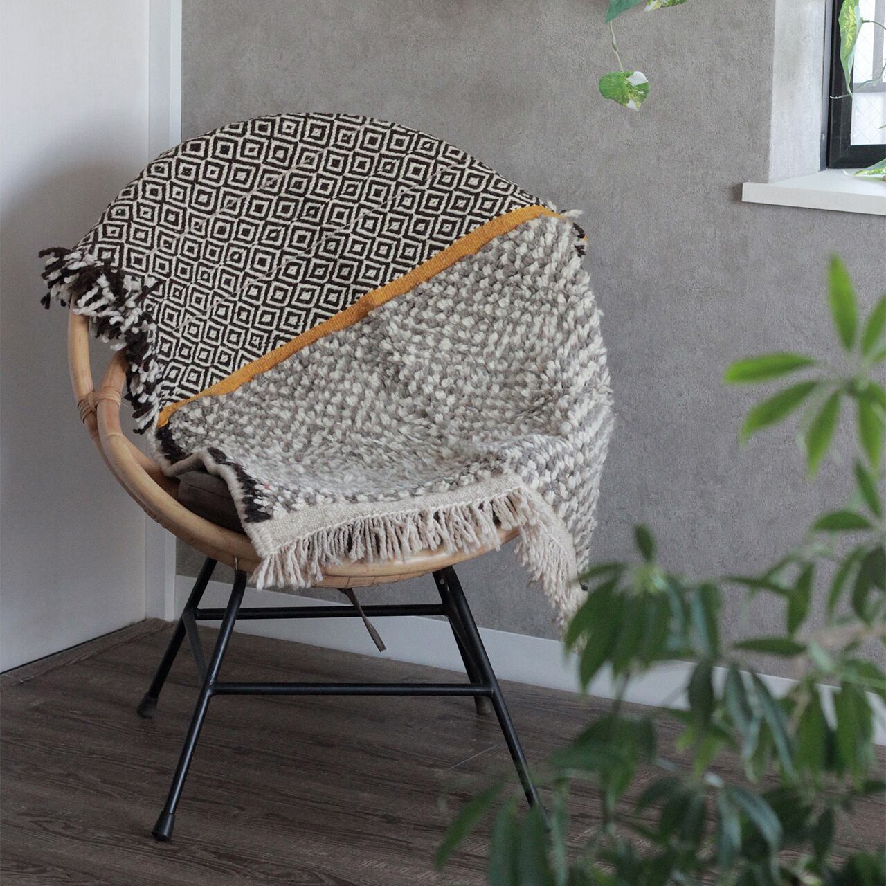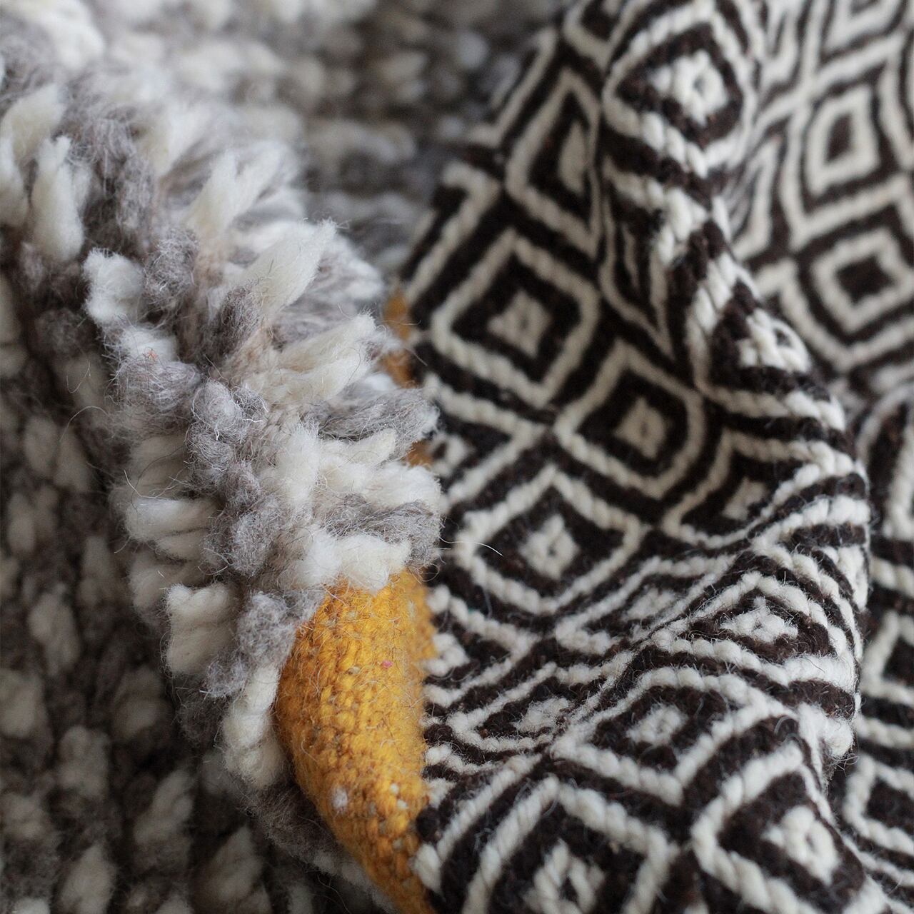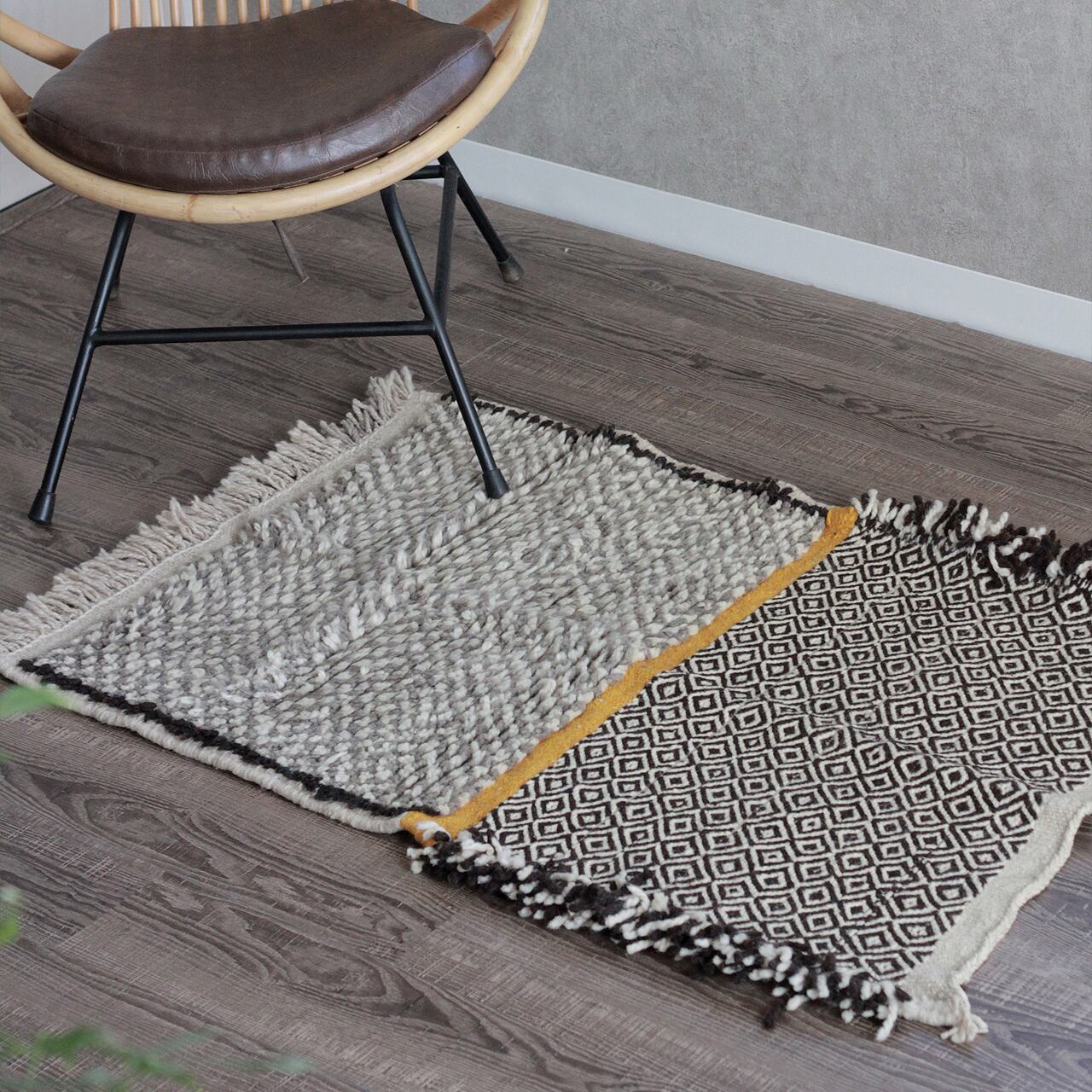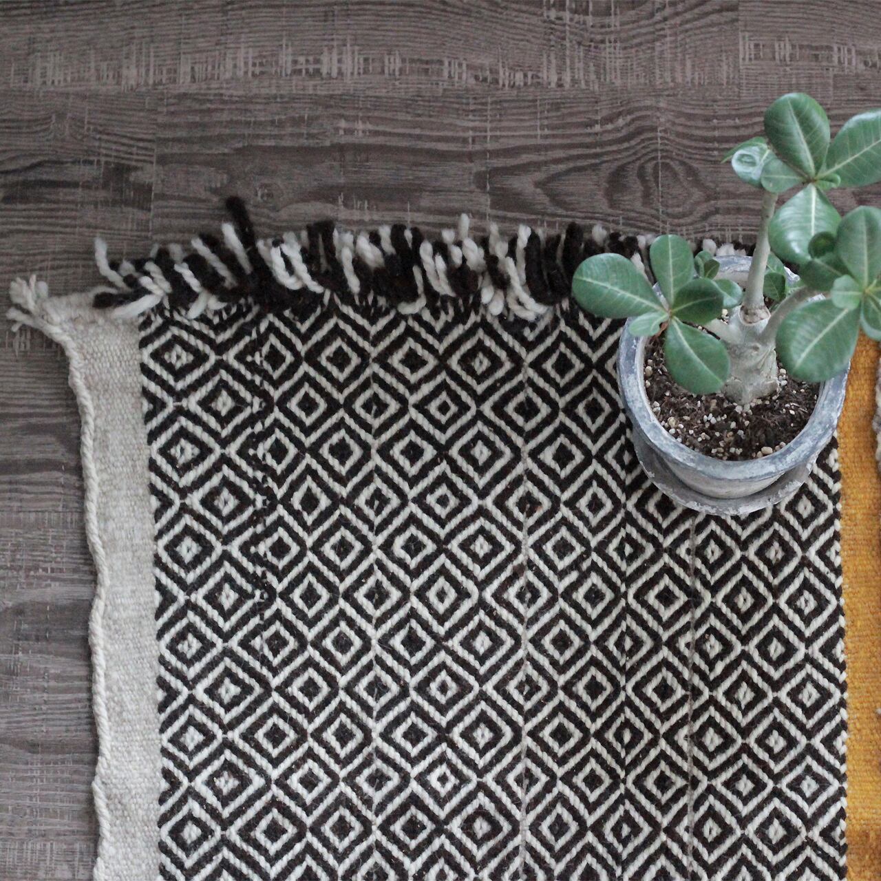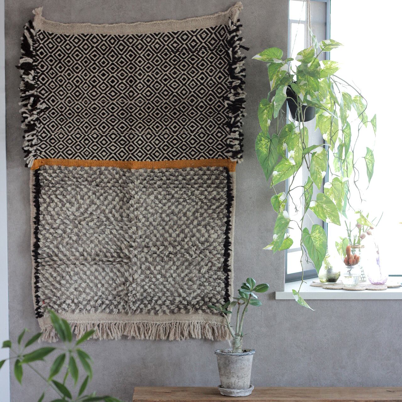 先人たちの失われた伝統を受け継いで、羊毛を手紡ぎ人の手で丁寧に織られたこだわりのスモールラグです。
