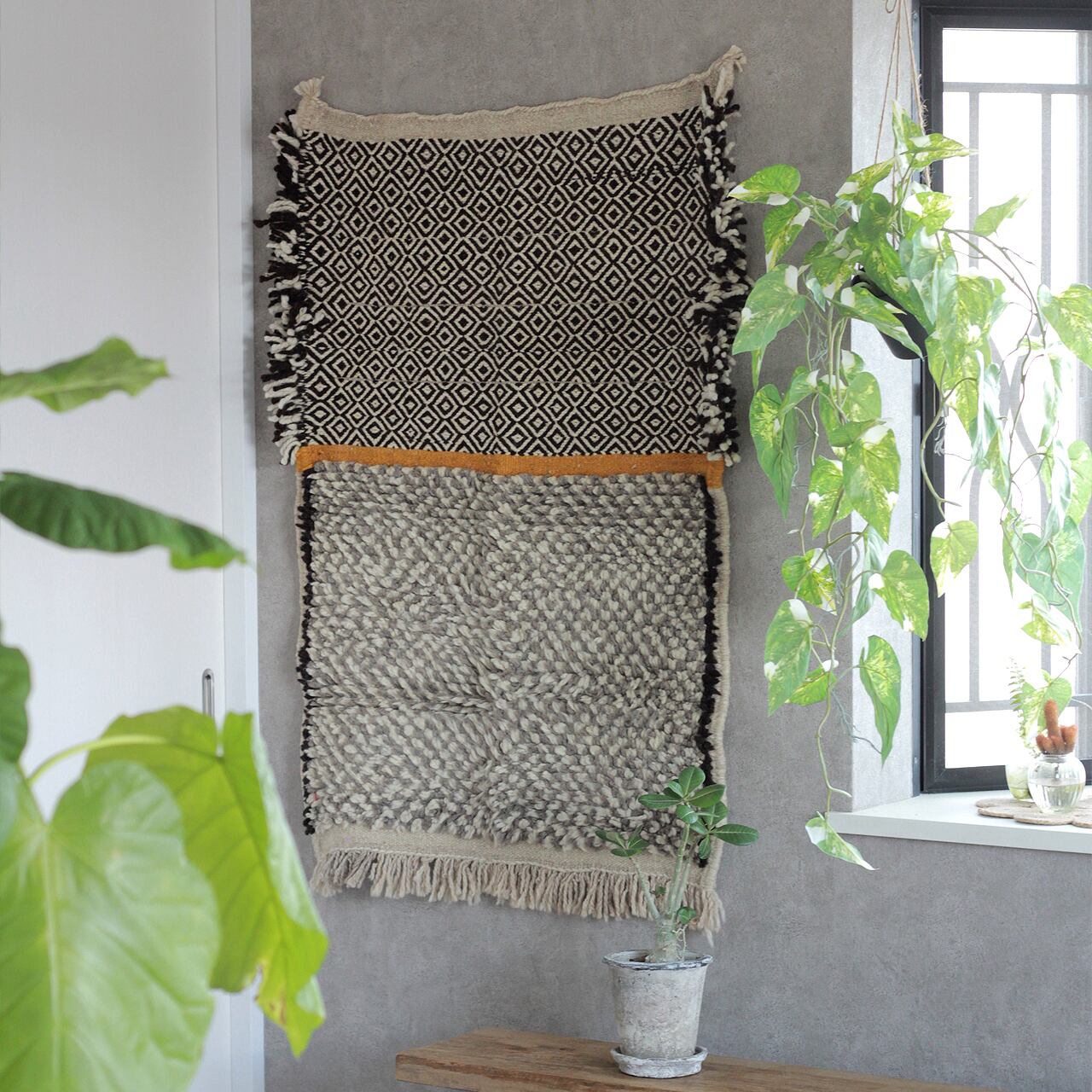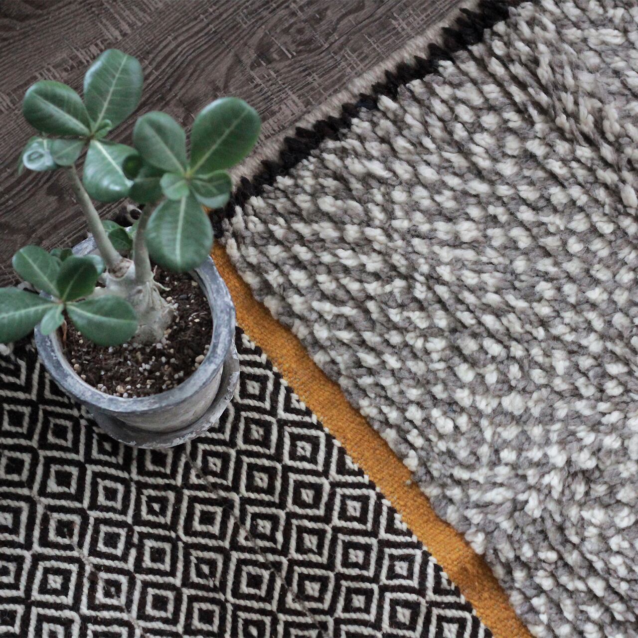 モロッコ先住民 ベルベル民族の日々の暮らしから生まれた伝統的な絨毯は、半分キリム織りだ気持ちの良い足ざわりで、オールシーズンお楽しみいただけます。