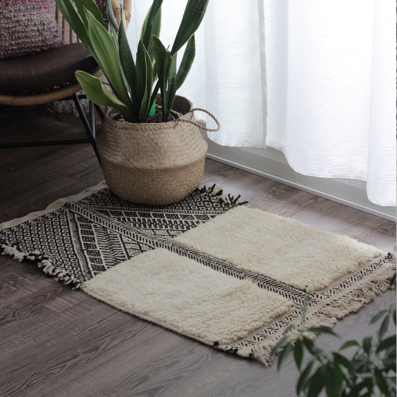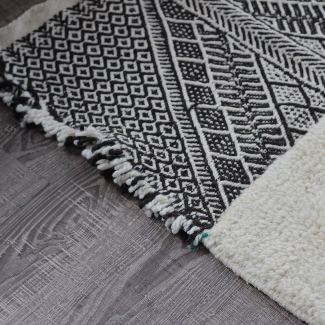 モロッコ先住民 ベルベル民族の日々の暮らしから生まれた伝統的な絨毯は、半分キリム織りだ気持ちの良い足ざわりで、オールシーズンお楽しみいただけます。