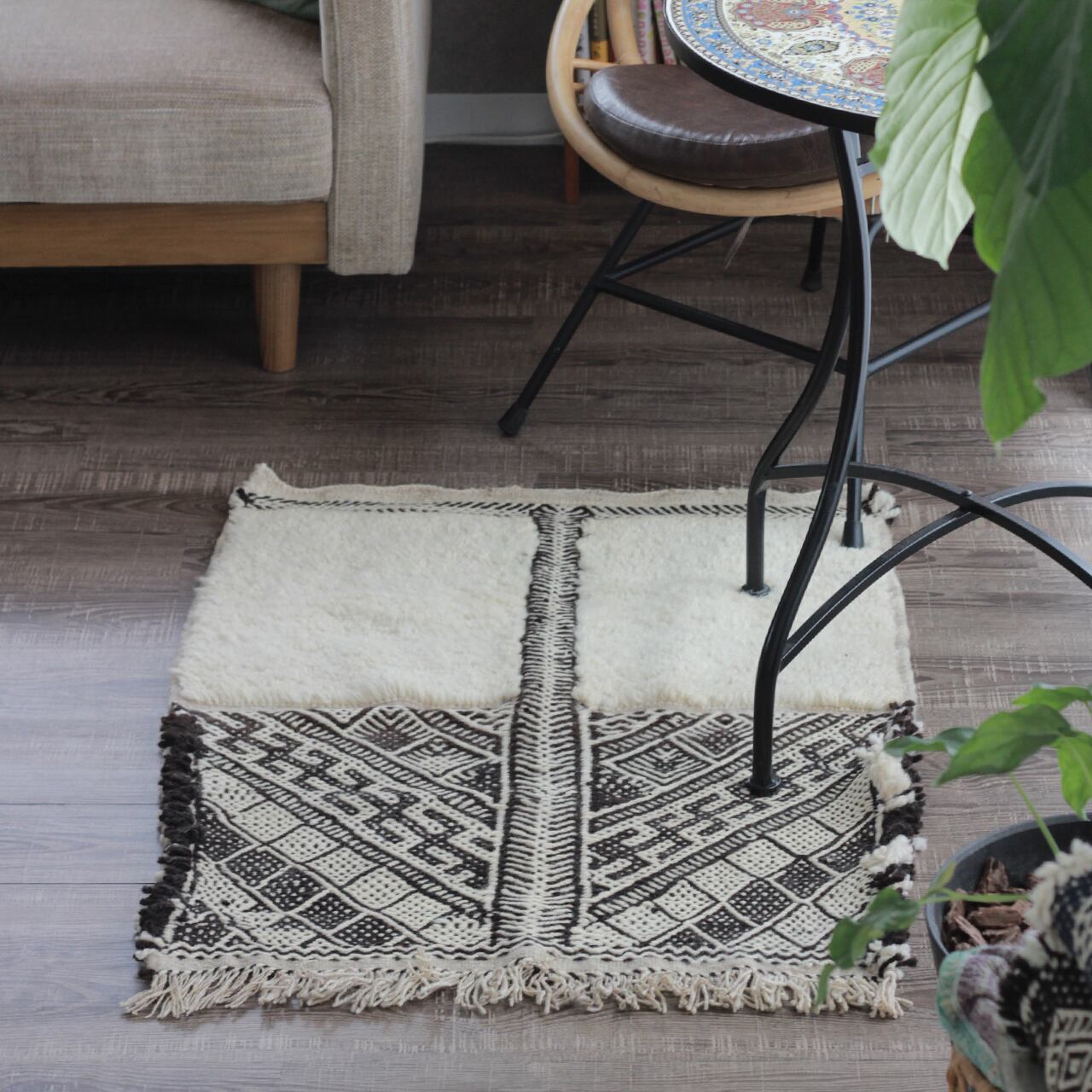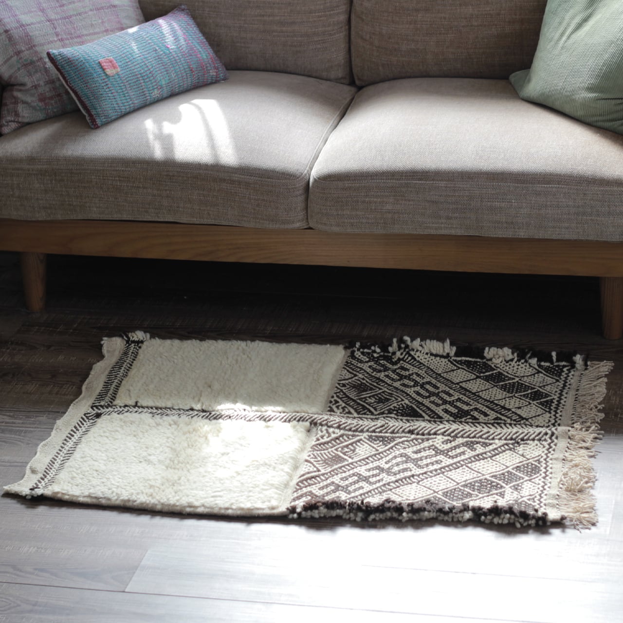 モロッコ先住民 ベルベル民族の日々の暮らしから生まれた伝統的な絨毯は、半分キリム織りだ気持ちの良い足ざわりで、オールシーズンお楽しみいただけます。