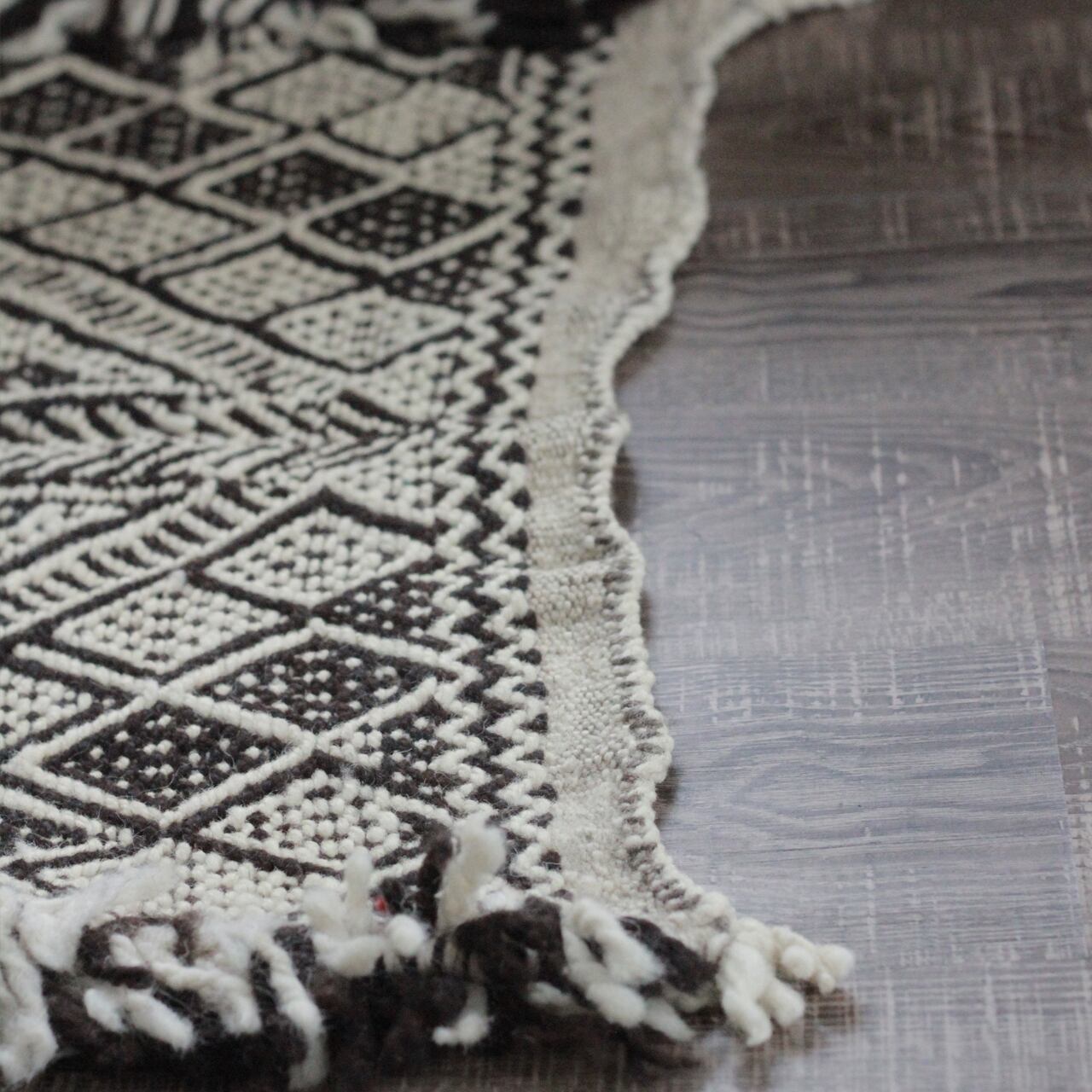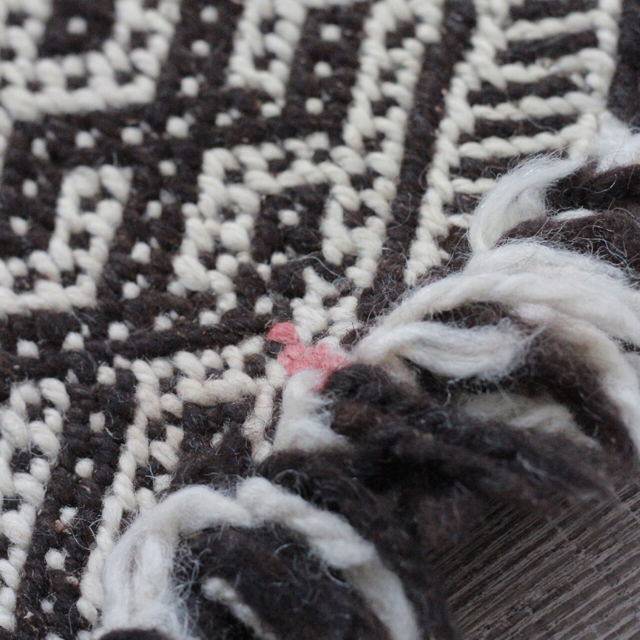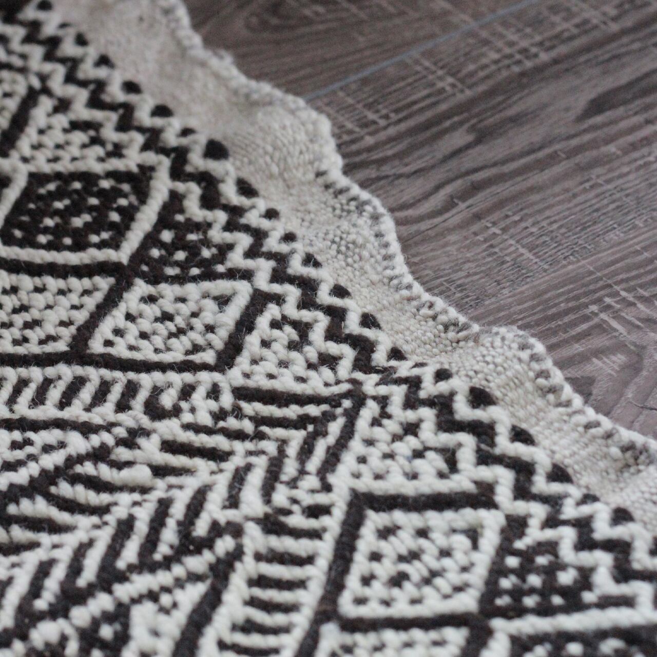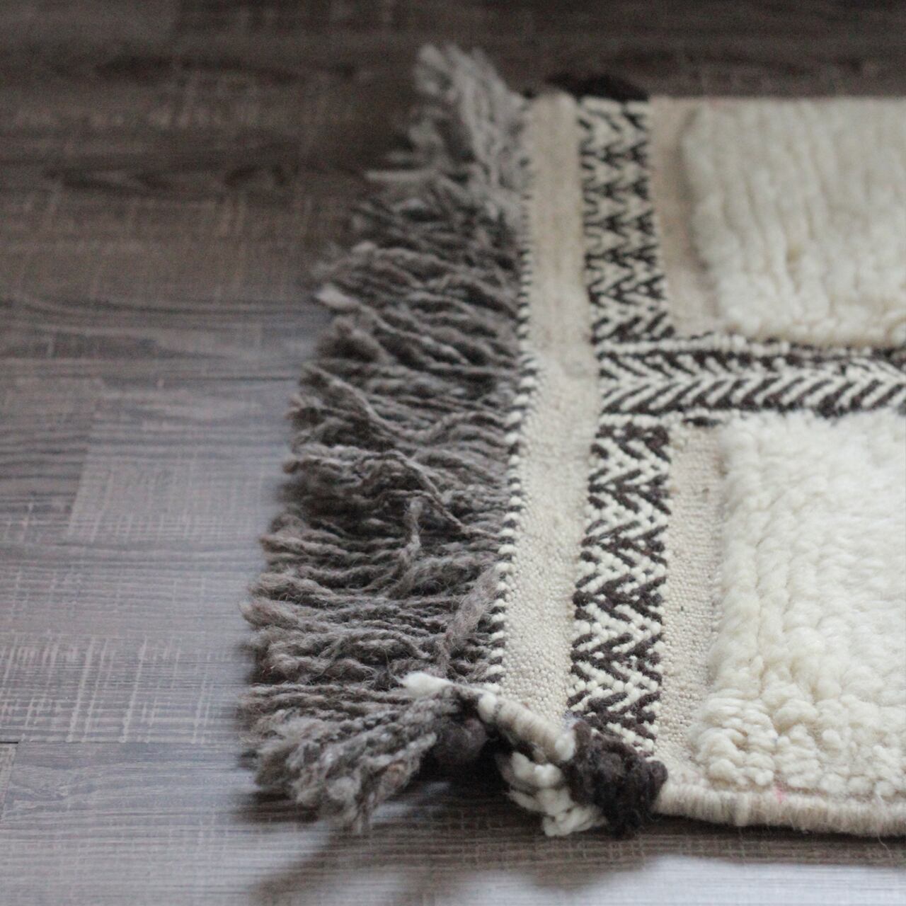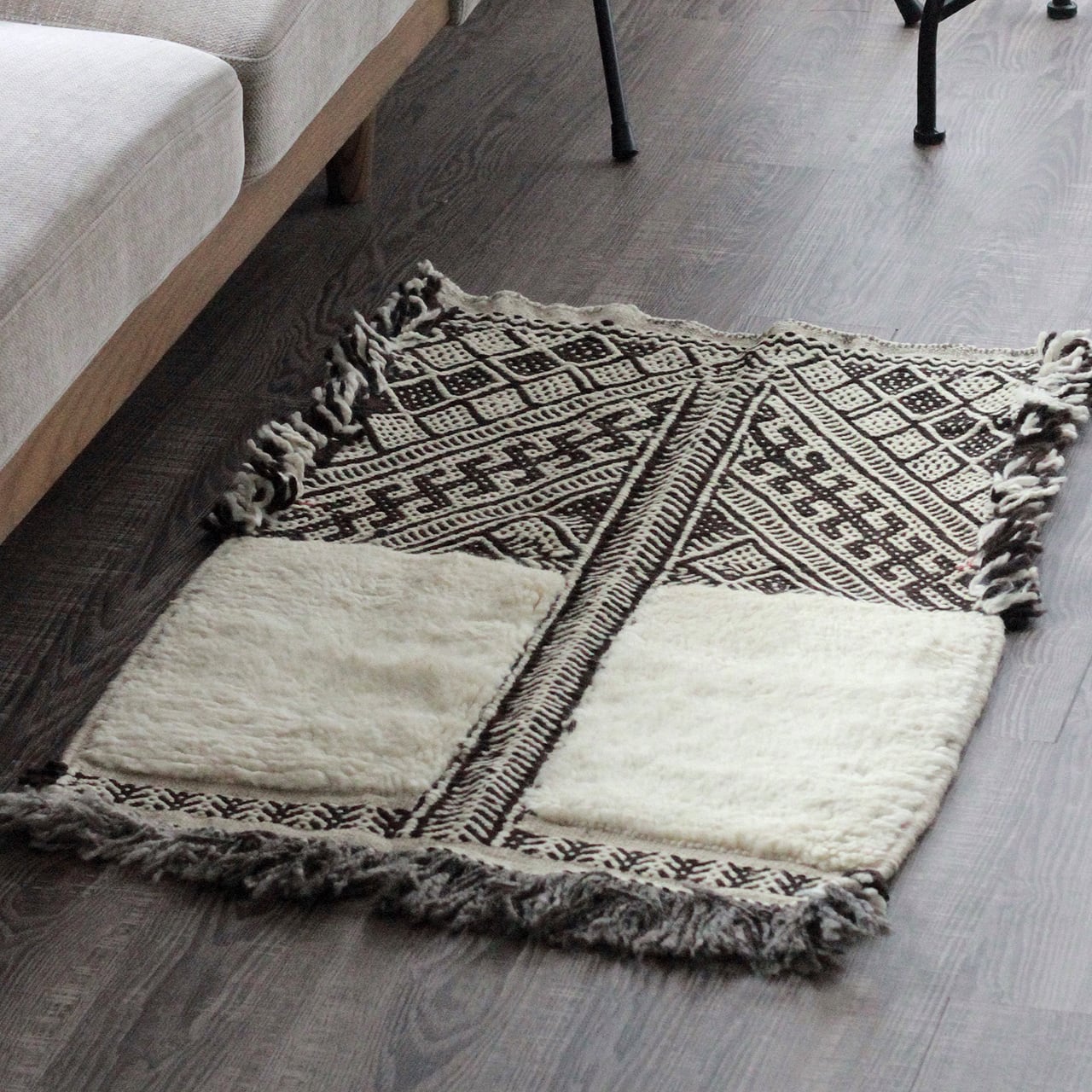 先人たちの失われた伝統を受け継いで、羊毛を手紡ぎ人の手で丁寧に織られたこだわりのスモールラグです。