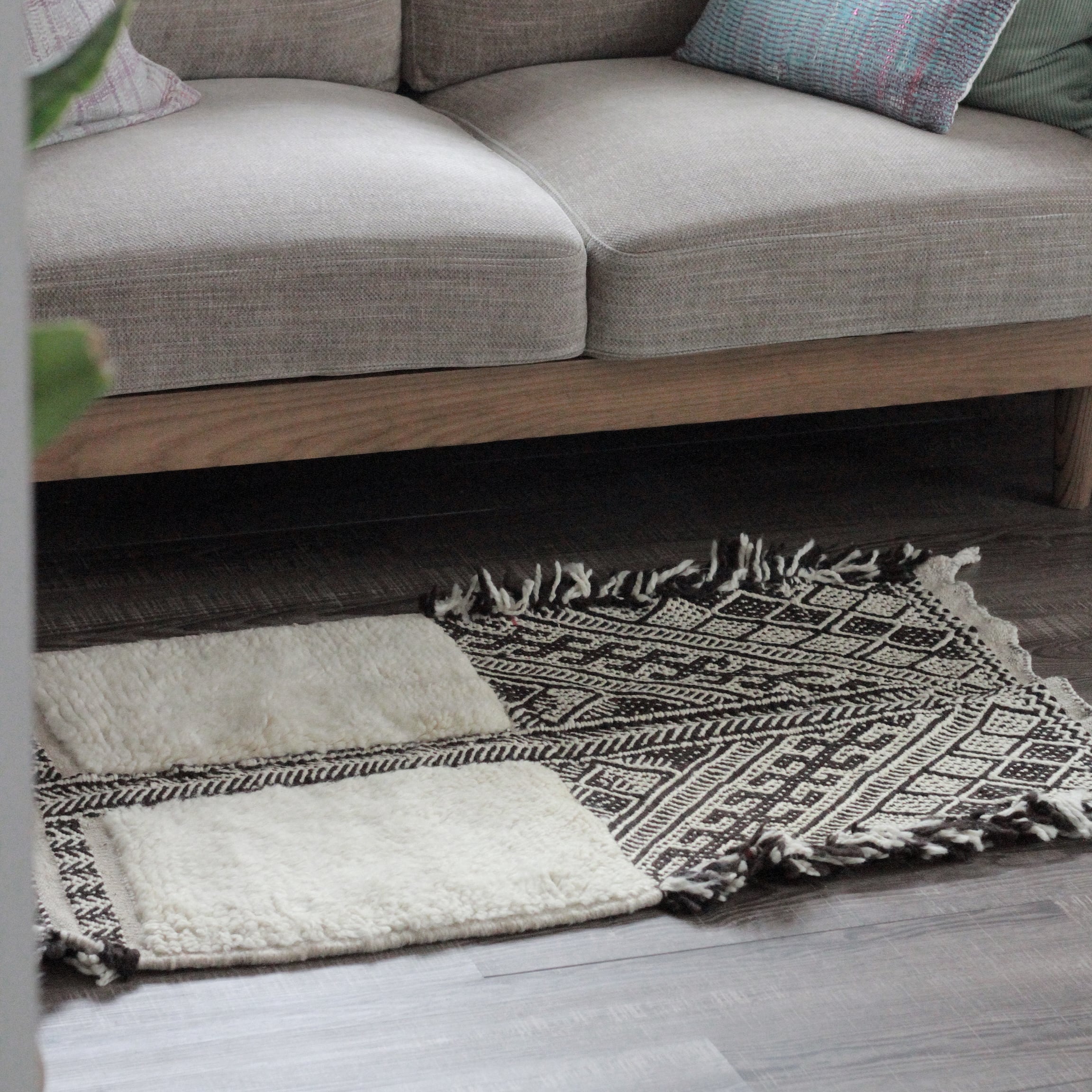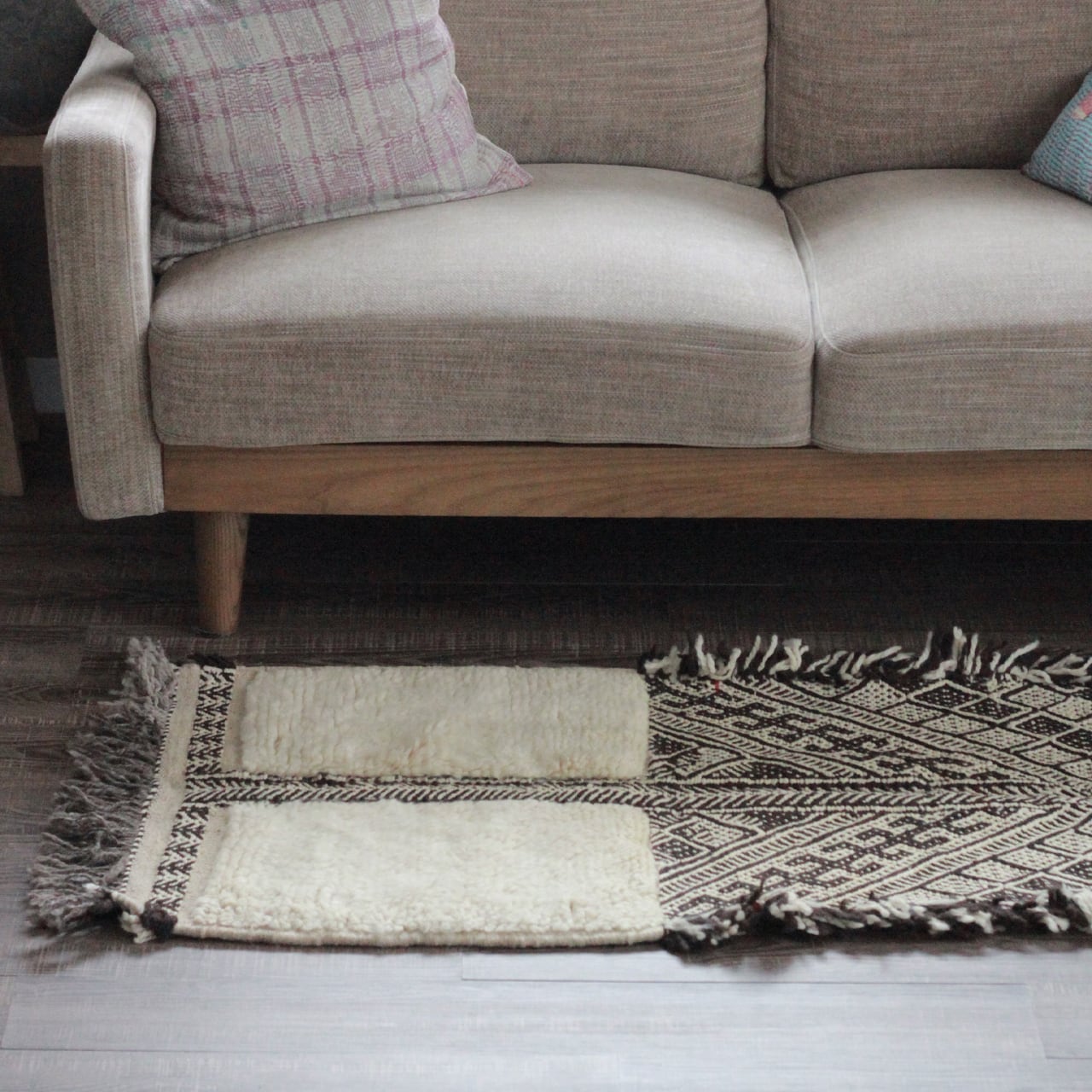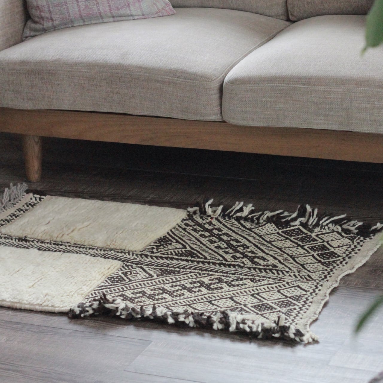 モロッコ先住民 ベルベル民族の日々の暮らしから生まれた伝統的な絨毯は、半分キリム織りだ気持ちの良い足ざわりで、オールシーズンお楽しみいただけます。