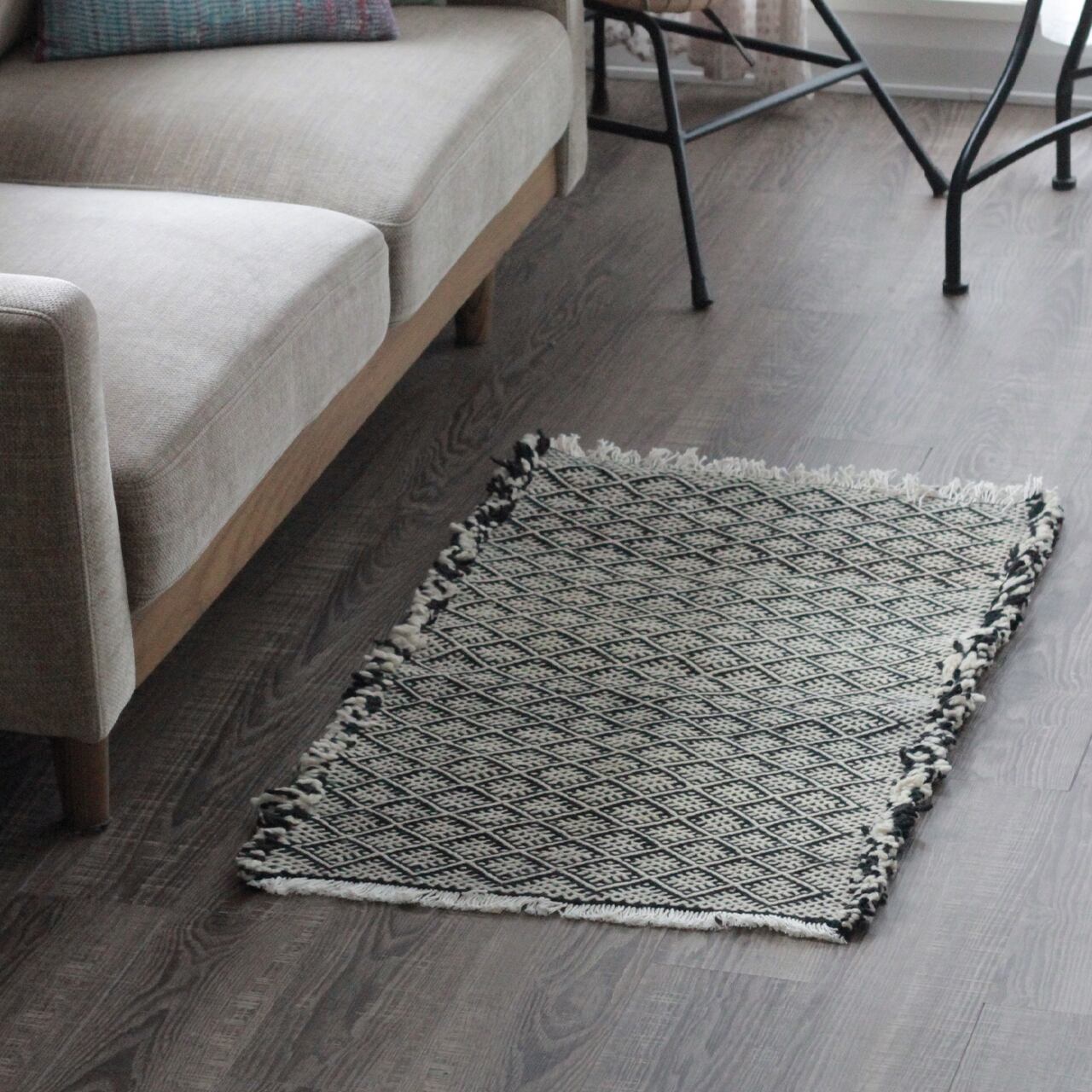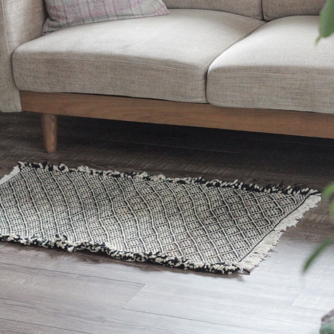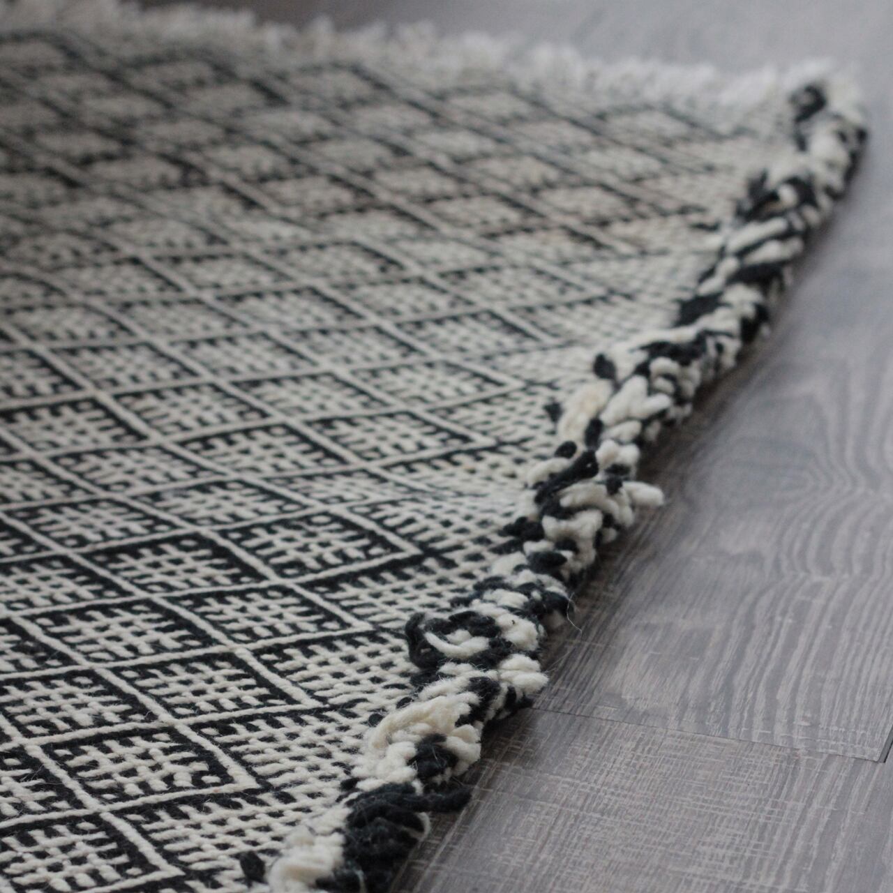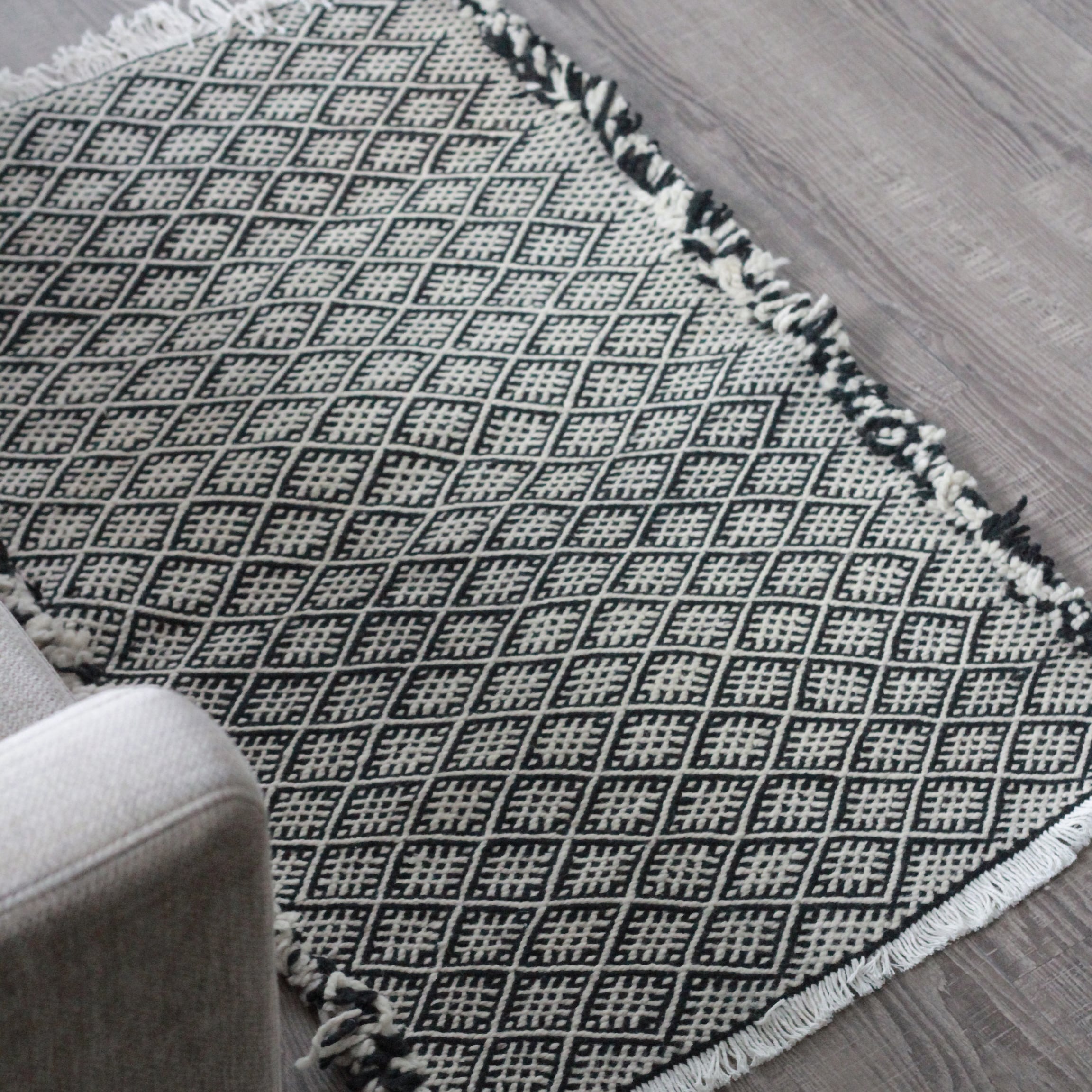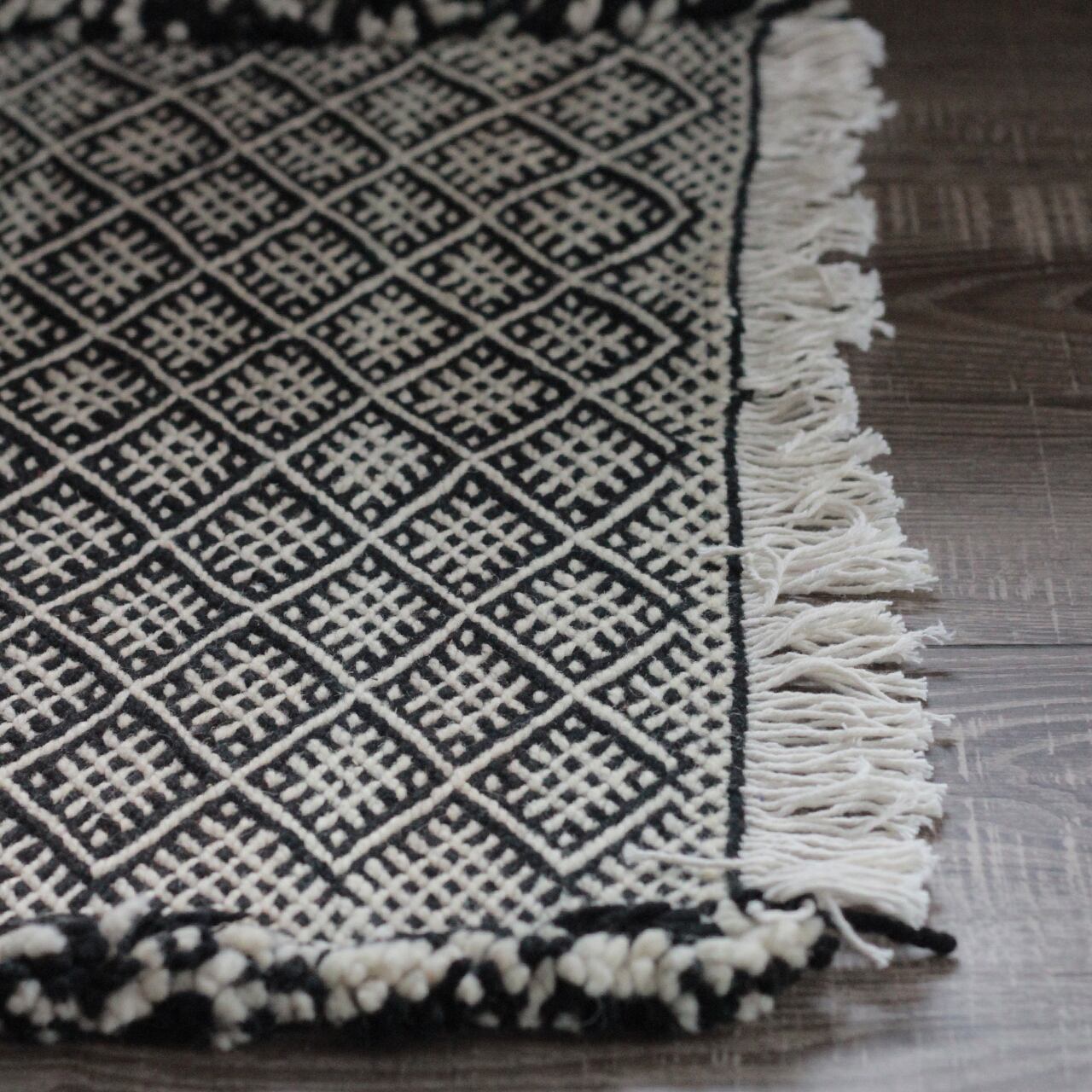【無機質さを整然と、黒白】キリム織ザナフィラグ 約101×57cm