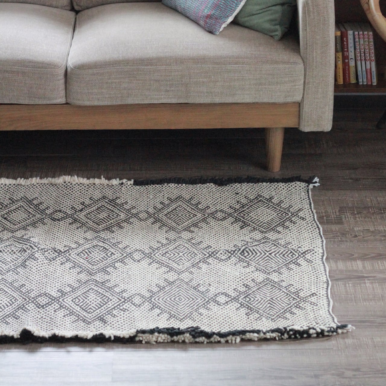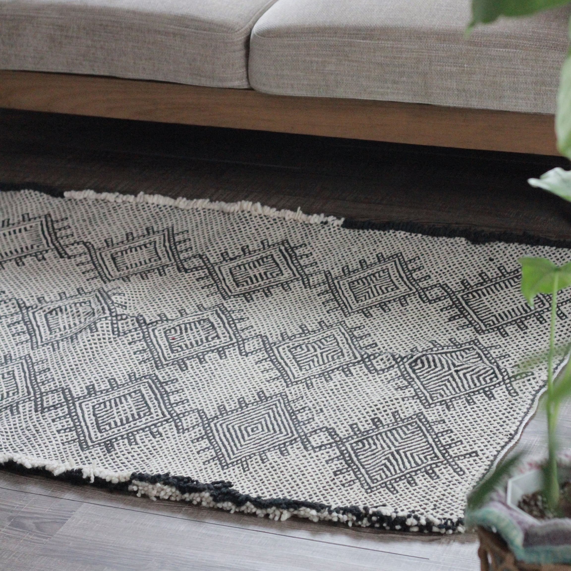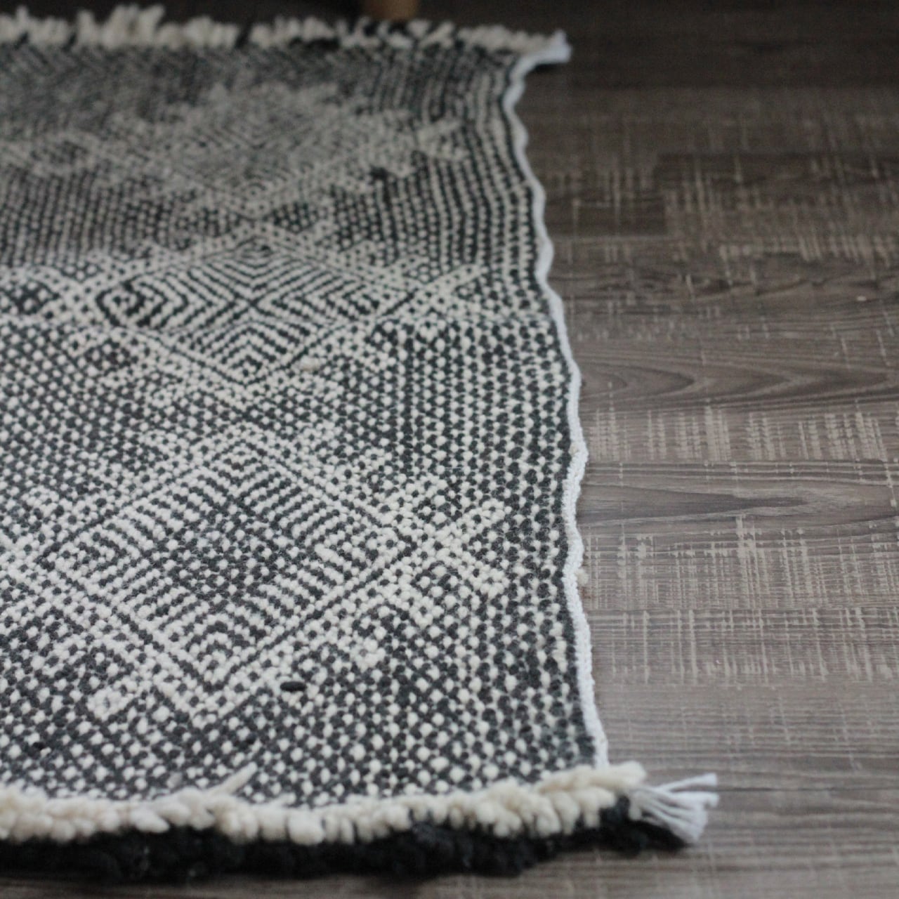 【光と影と表裏一体、黒白】キリム織ザナフィラグ 約146×102cm