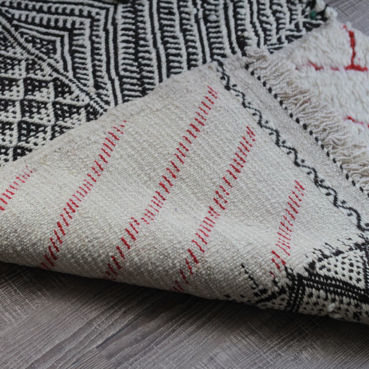 縁が歪んだ様も手織りならではのなんとも味わい深いザナフィラグです。
