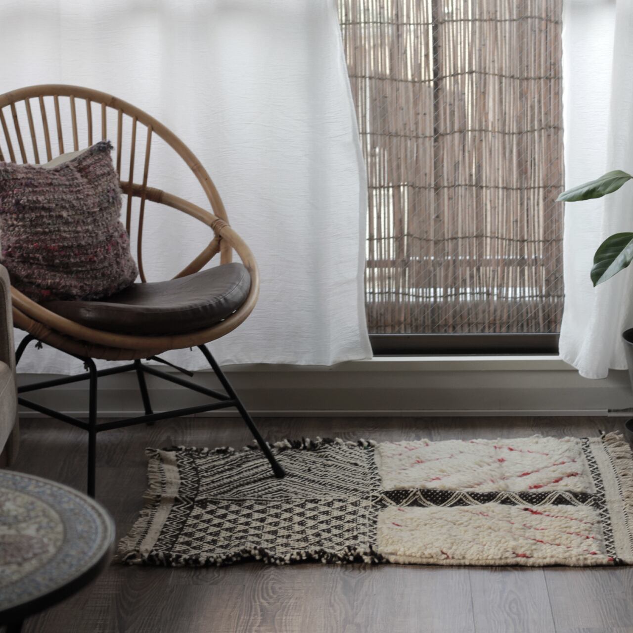 ・時々ベランダで天日干しし、布団たたきなどでパンパンと叩くと、寝ていた毛足が立ち上がり気持ちのいいラグになります。