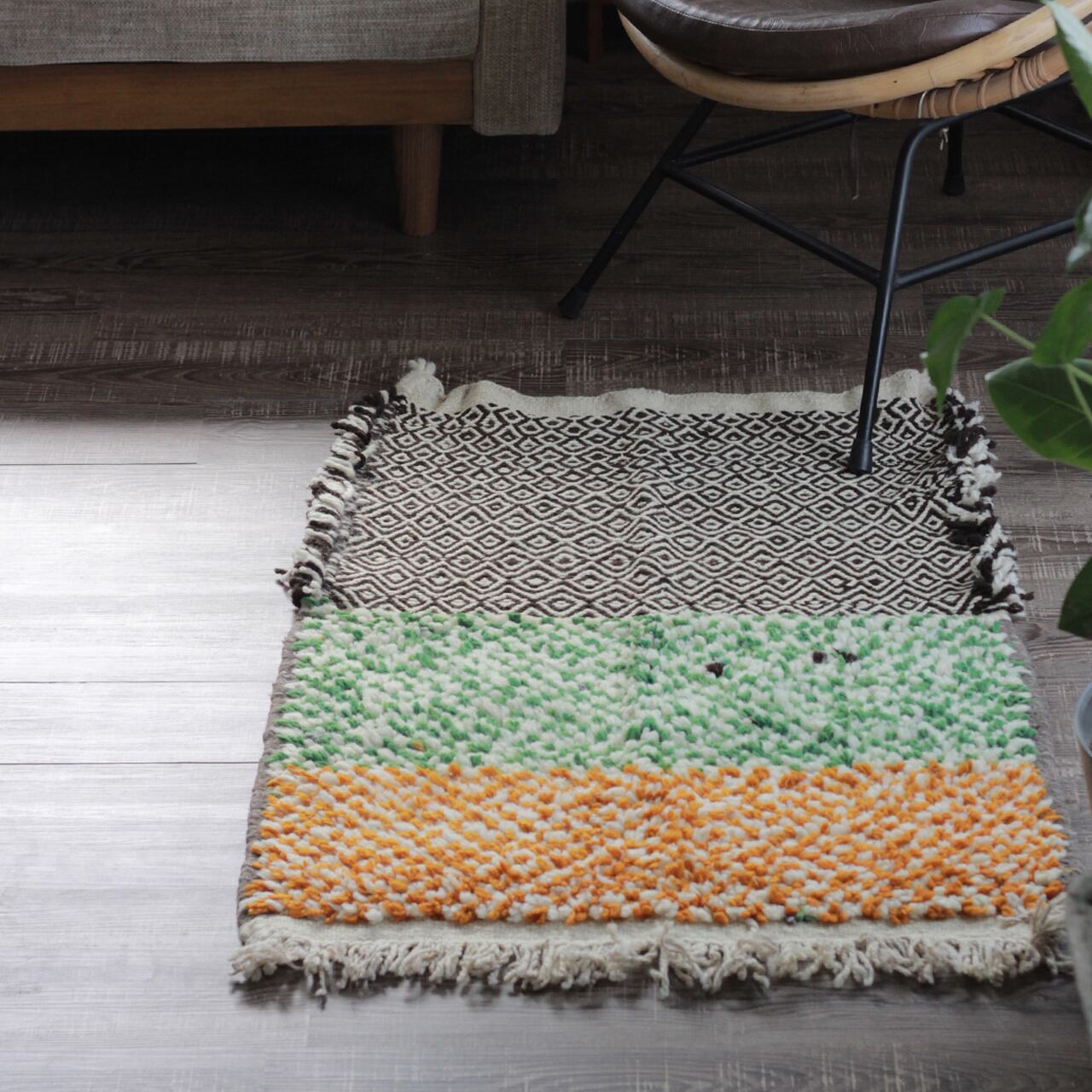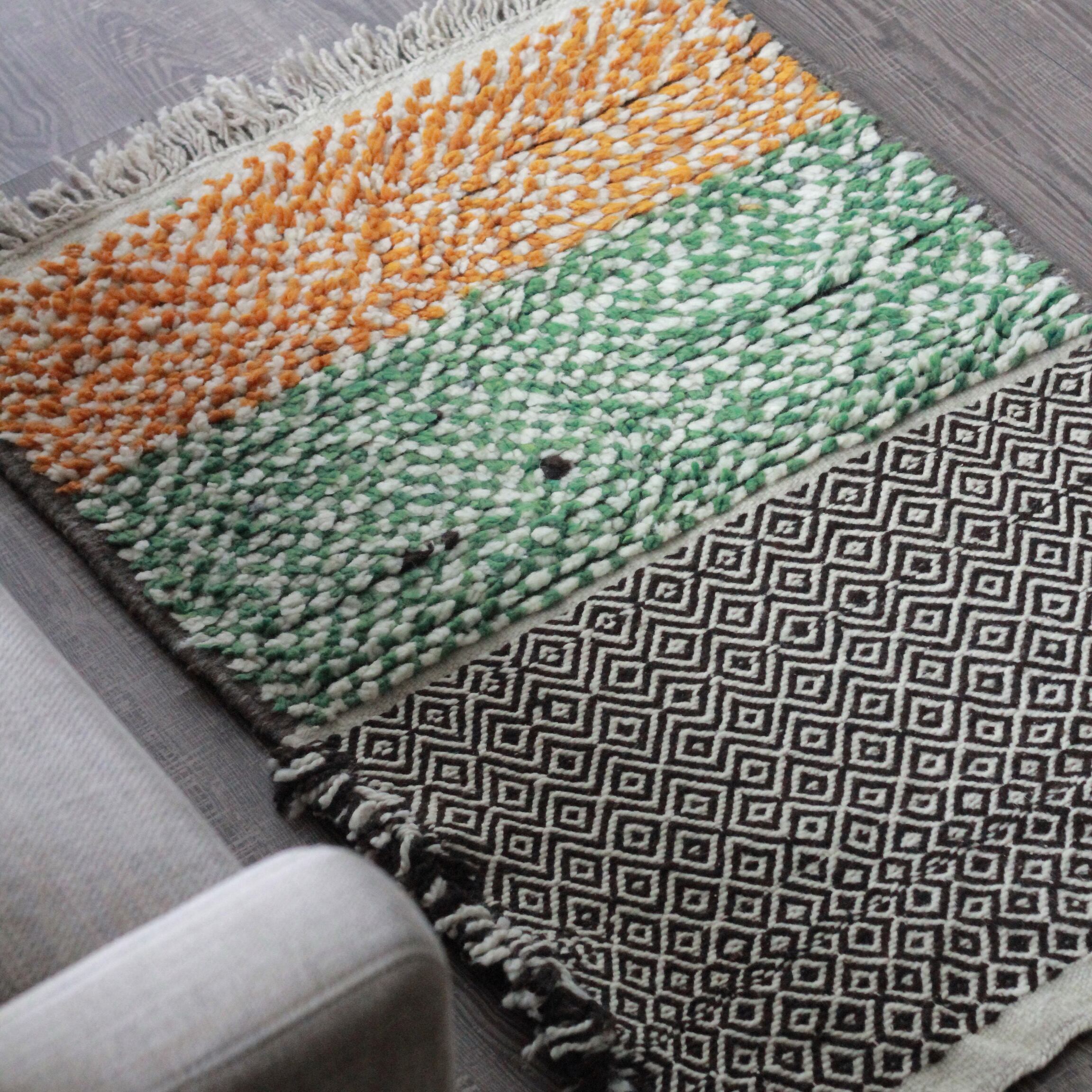モロッコ先住民 ベルベル民族の日々の暮らしから生まれた伝統的な絨毯は、半分キリム織りだ気持ちの良い足ざわりで、オールシーズンお楽しみいただけます。
