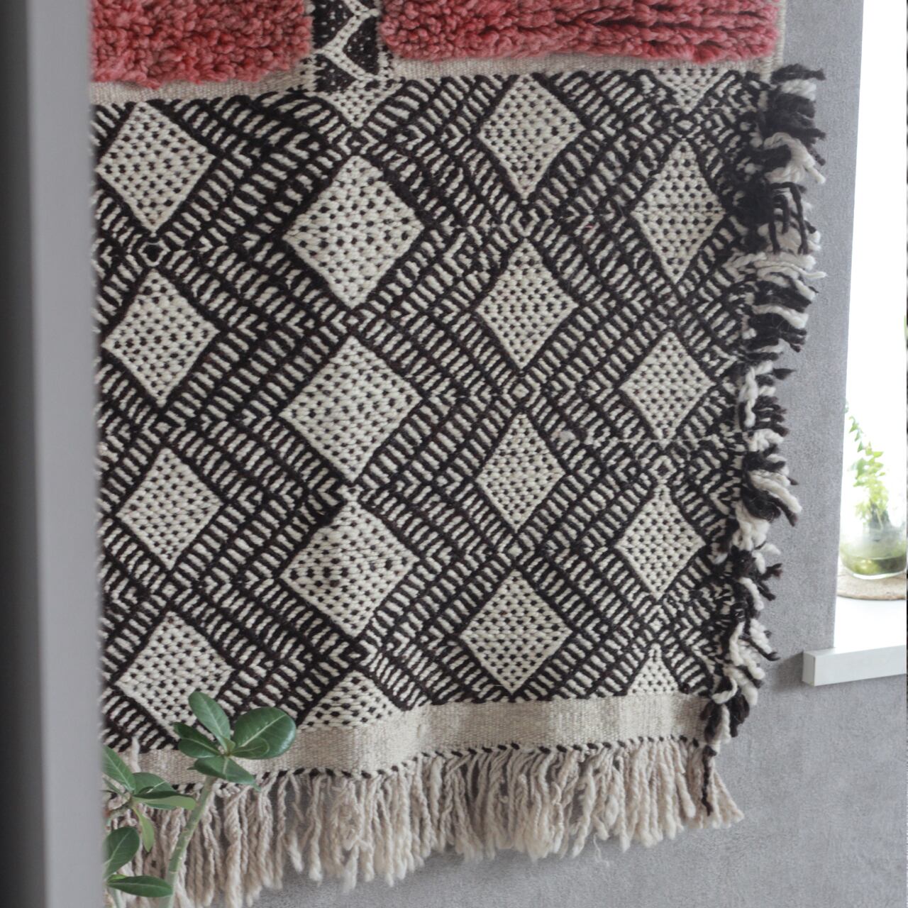 大胆な菱紋様の組み合わせが、力強くもありしなやかなミックスザナフィラグです。
