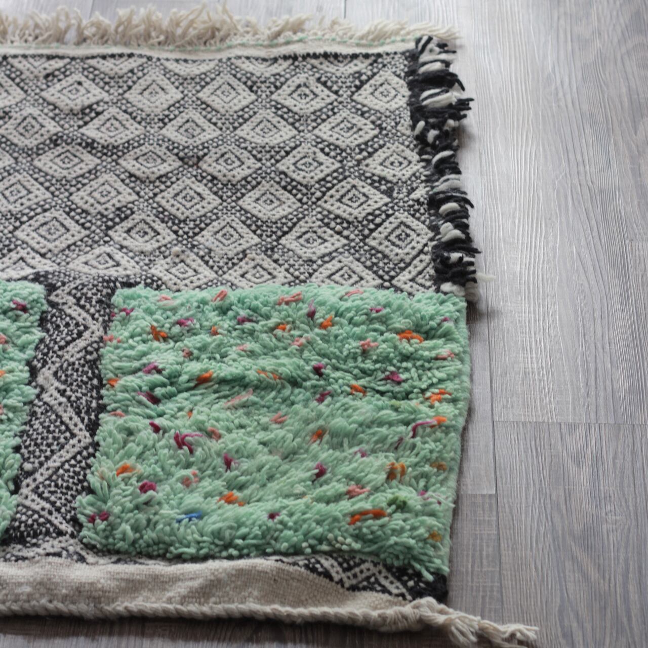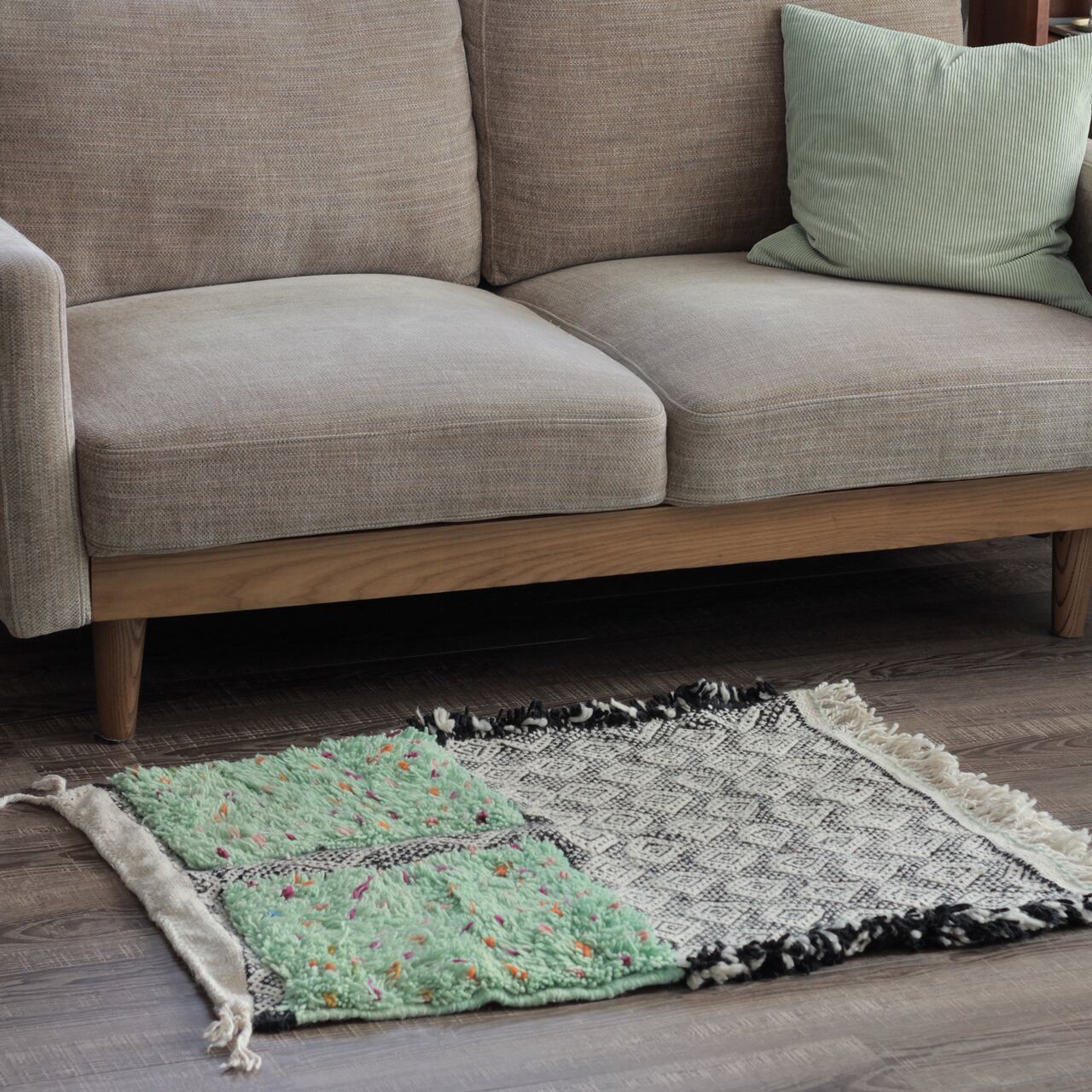 モロッコ先住民 ベルベル民族の日々の暮らしから生まれた伝統的な絨毯は、半分キリム織りだ気持ちの良い足ざわりで、オールシーズンお楽しみいただけます。