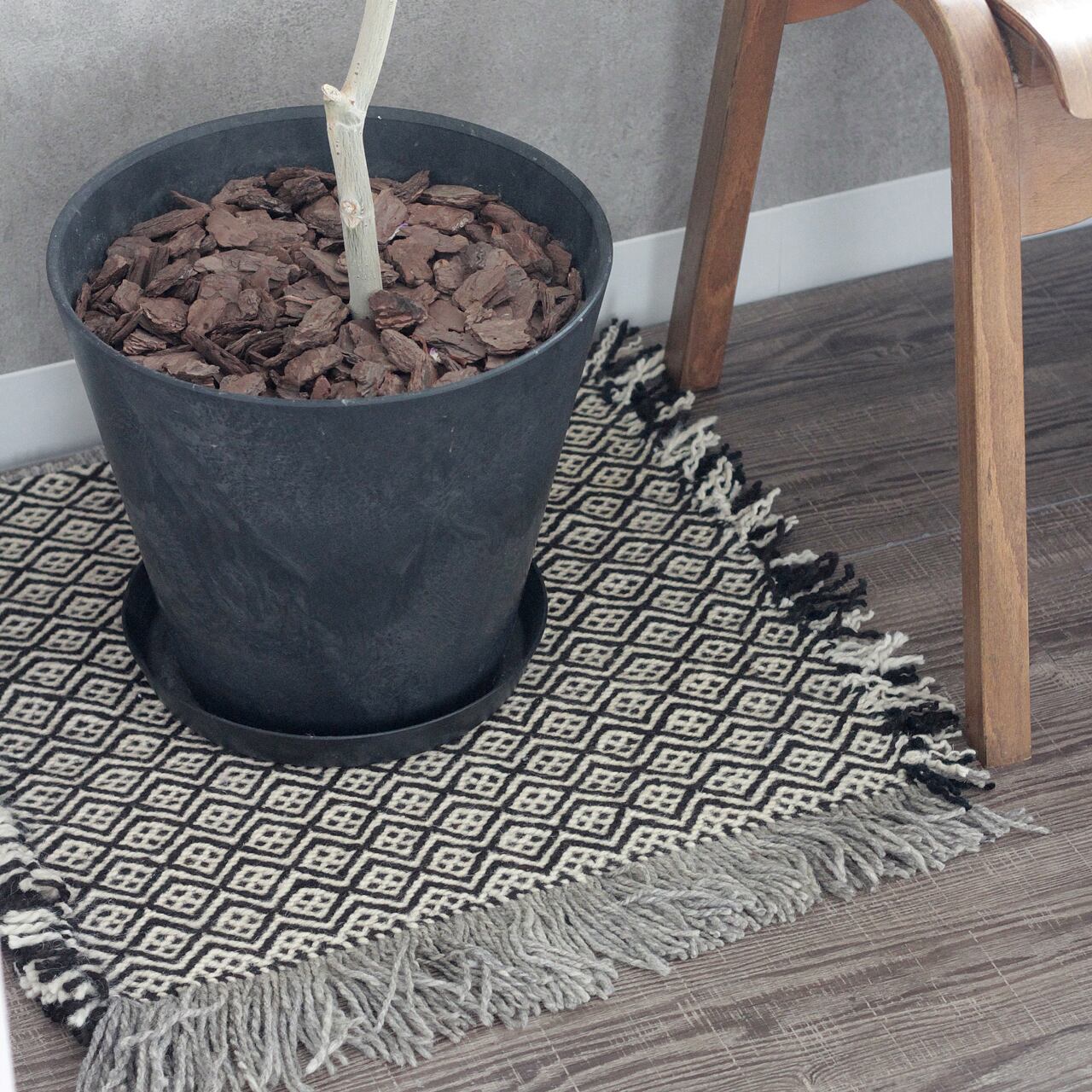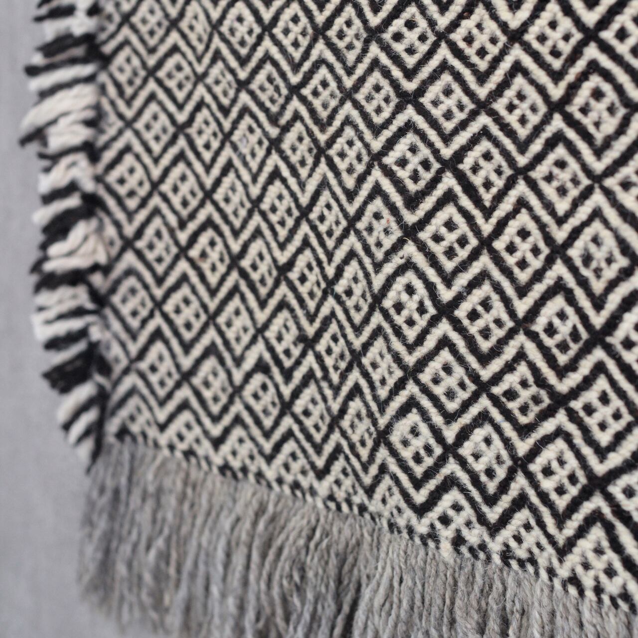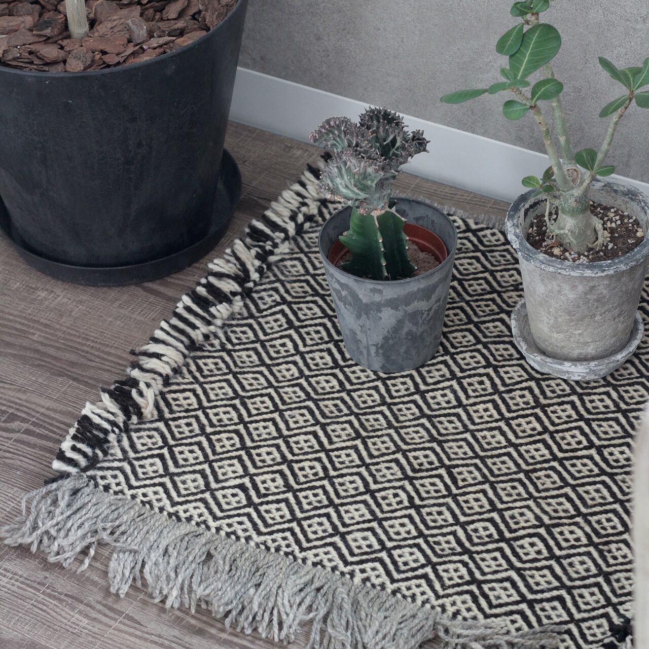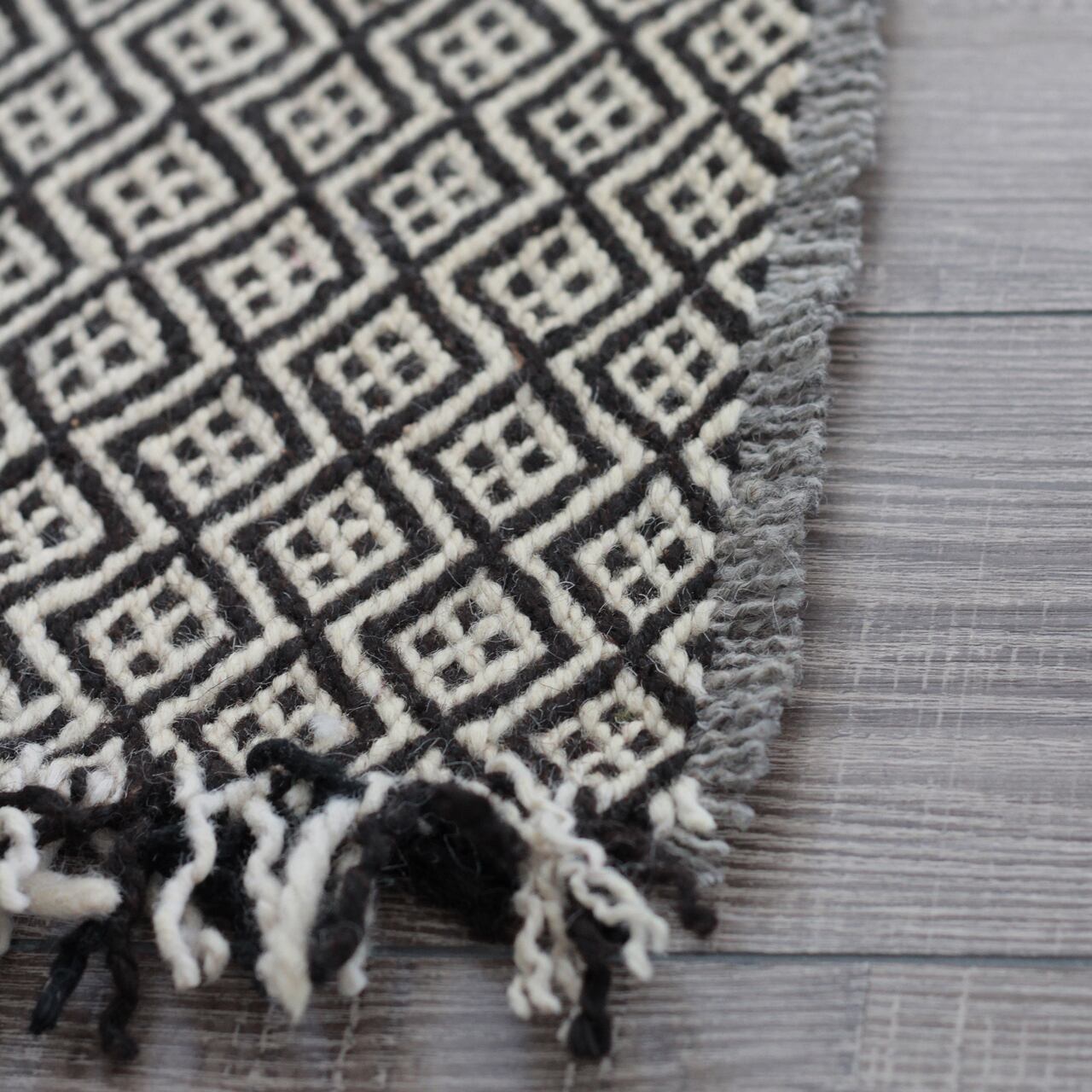 先人たちの失われた伝統を受け継いで、羊毛を手紡ぎ人の手で丁寧に織られたこだわりのスモールラグです。