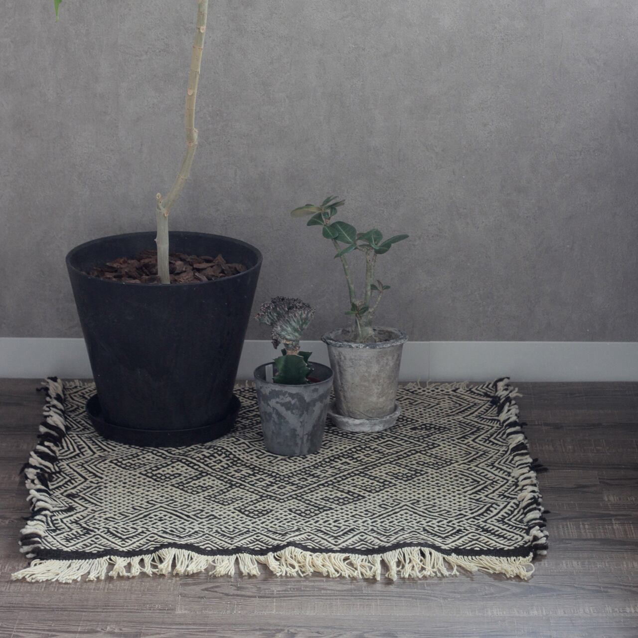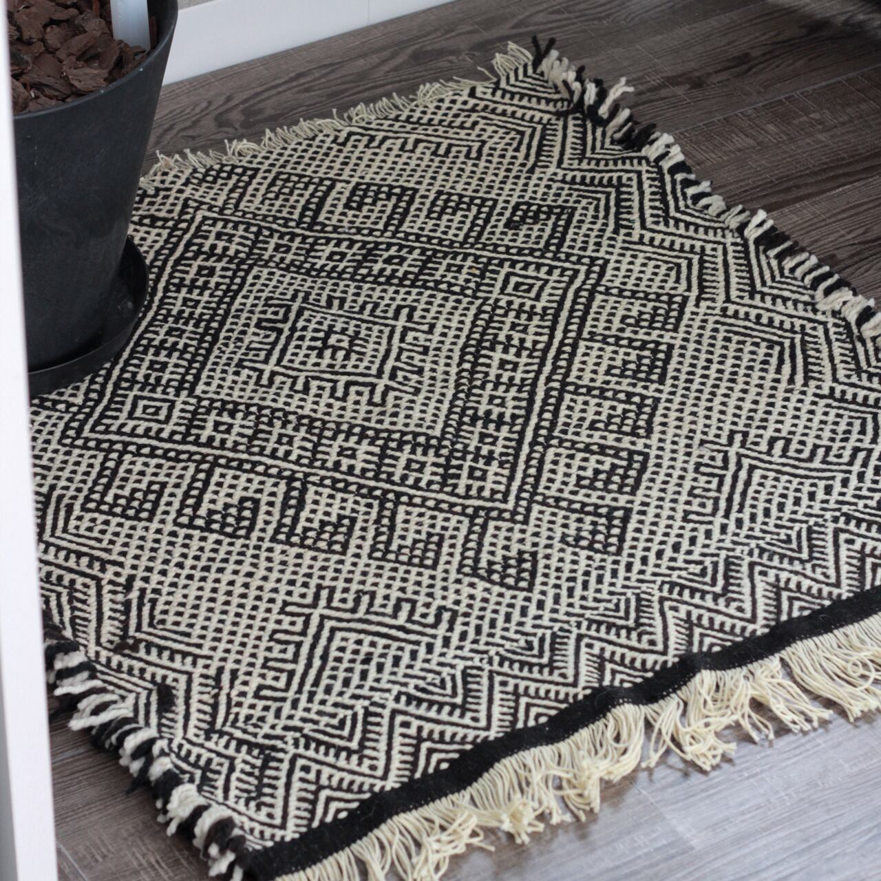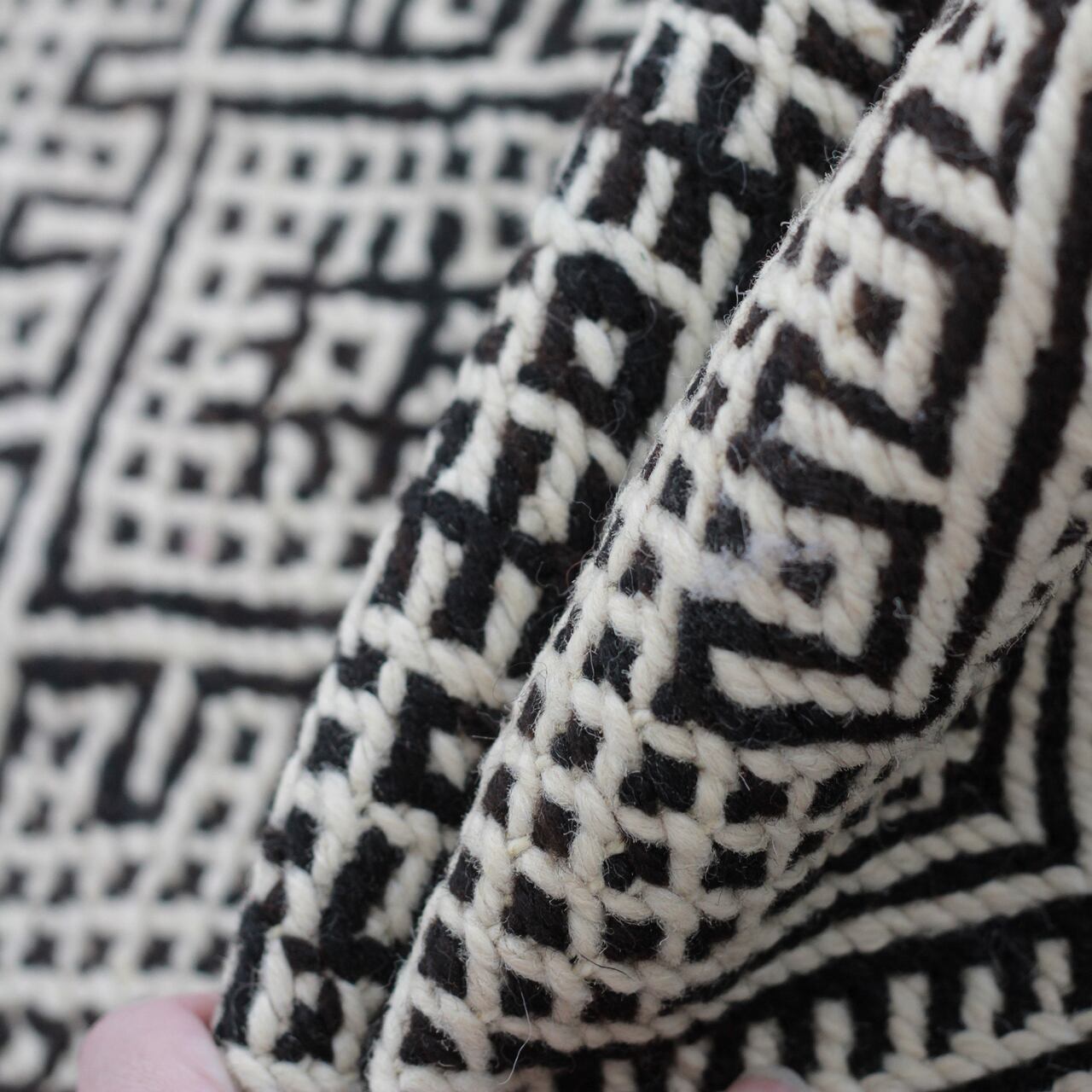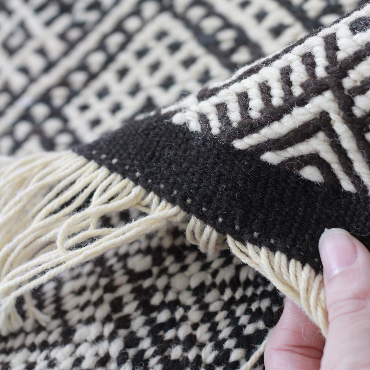 先人たちの失われた伝統を受け継いで、羊毛を手紡ぎ人の手で丁寧に織られたこだわりのスモールラグです。